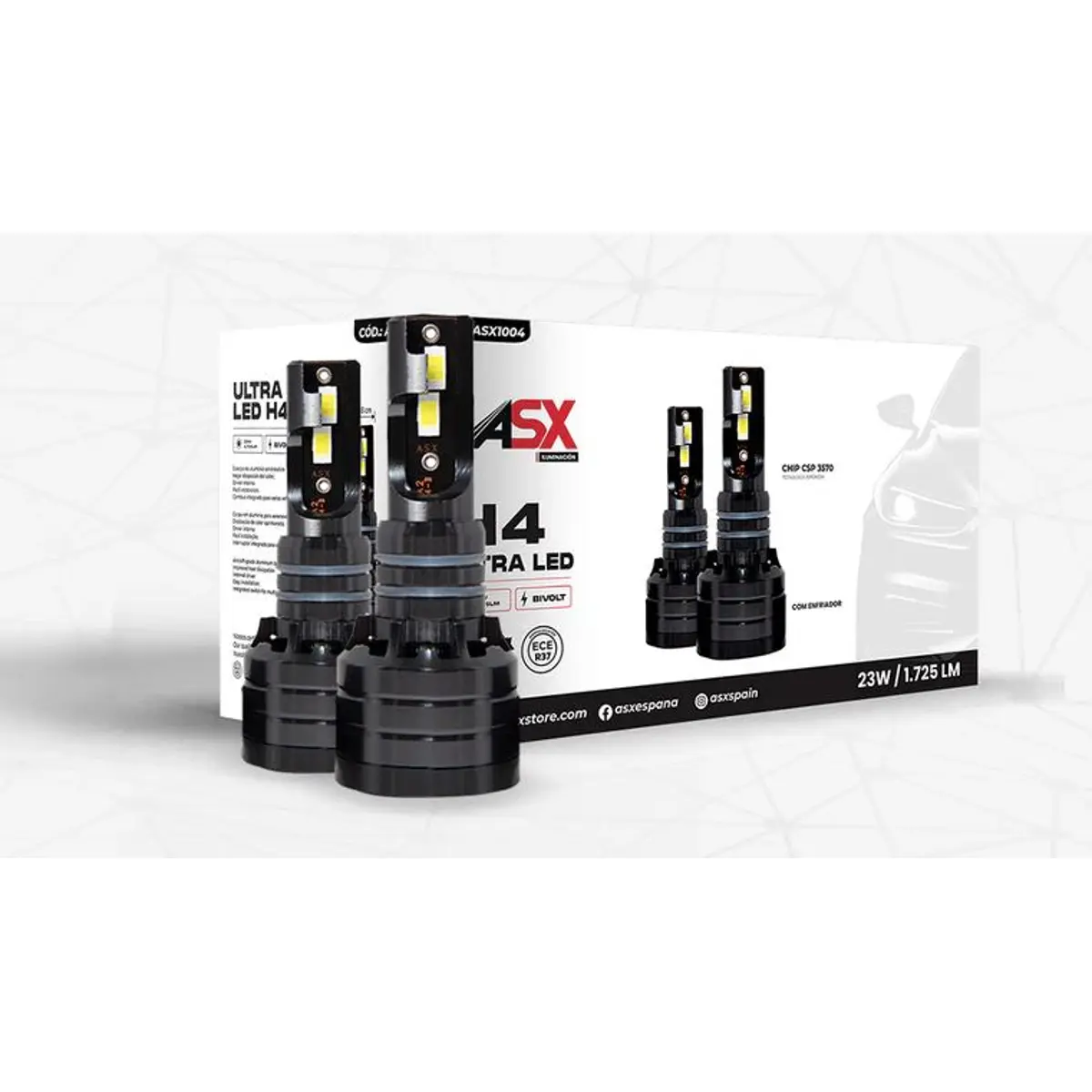 A lâmpada LED de farol dianteiro de carro, ULTRA LED H4, de qualidade superior, produz até 300% mais intensidade luminosa em comparação com as lâmpadas halógenas. Ela oferece aos condutores uma condução mais segura, graças a uma luz super-brilhante à noite, sem ofuscar os veículos no sentido contrário, com 1725 lúmens por lâmpada.