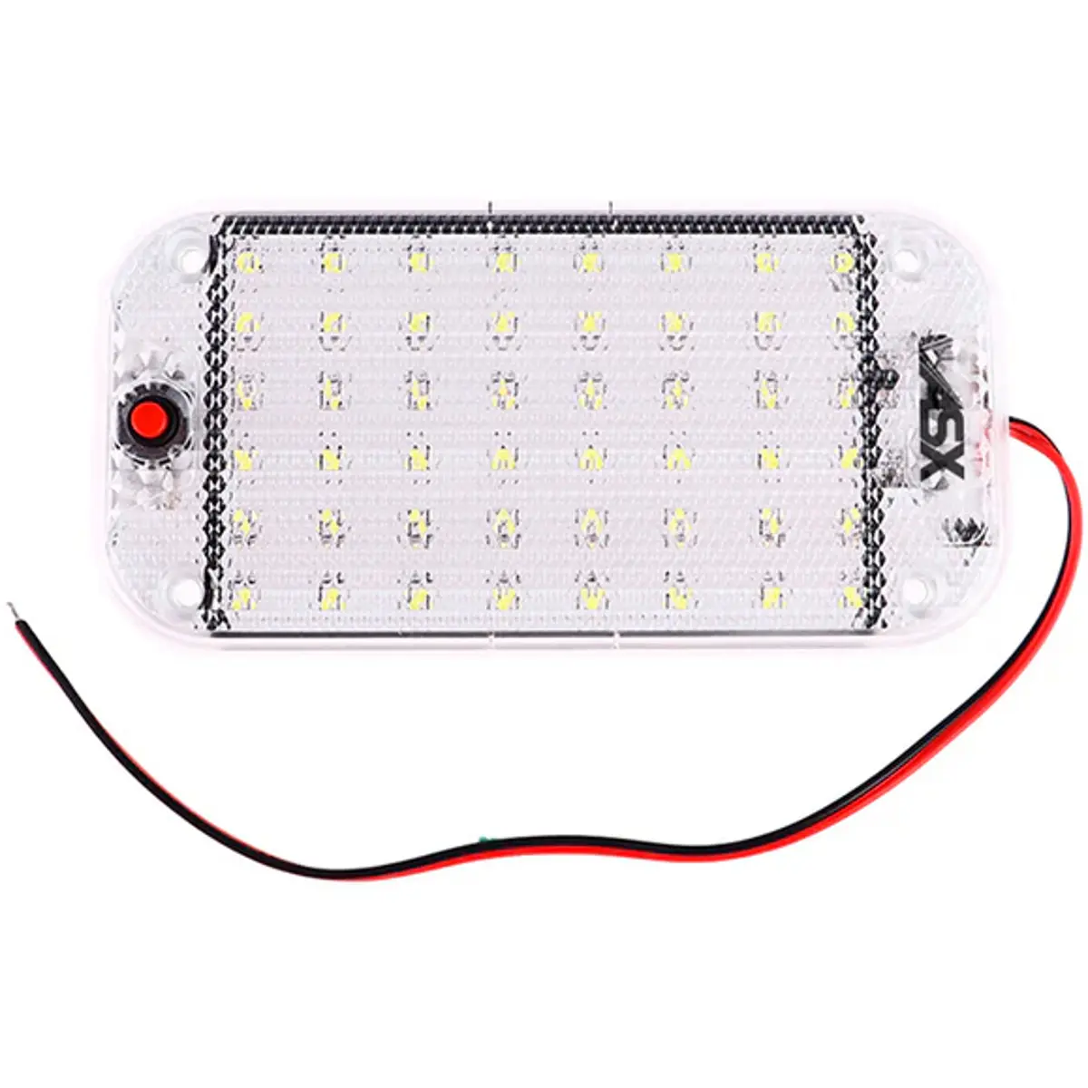 Esta barra de luz LED, de teto interior, com 48 LEDs de alta luminosidade e baixo consumo, foi concebida para ser instalada em veículos como camiões, autocarros, caravanas, barcos, ou até mesmo utilizada em campismo, reparações e espaços como armazéns e escritórios. Inclui botão de ligar/desligar e funciona com tensão de 12 a 48V DC.