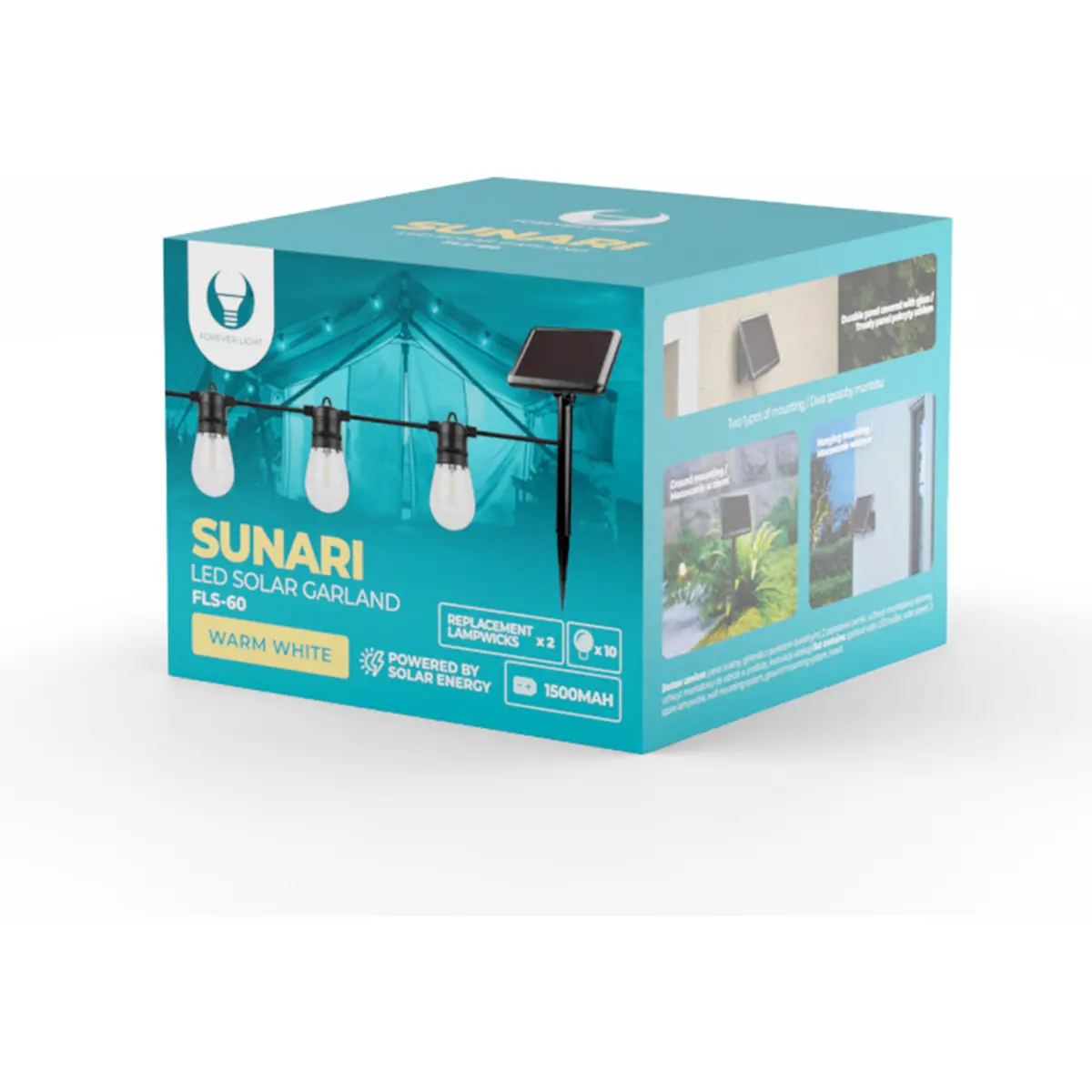 Forever FLS-60 - Grinalda decorativa Solar + 10x lâmpadas LED (branco quente) IP44 - 7,5m