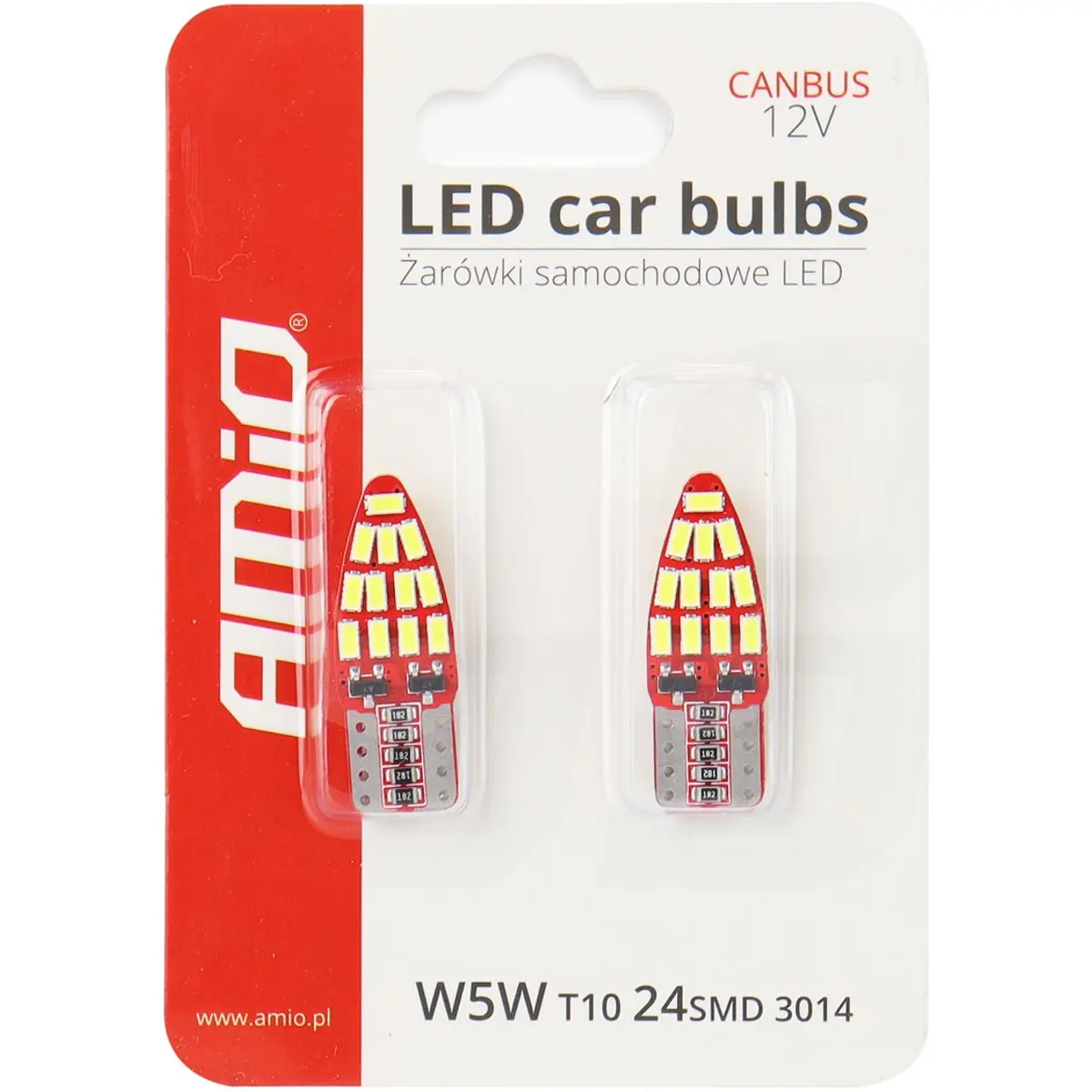 AMiO - Lâmpada LED T10 W2.1x9.5d (W5W) 24×SMD3014 12V 2.5W CANbus [2 unid.]