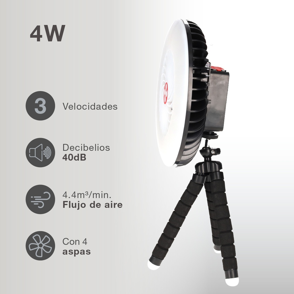 Tanami - Mini ventilador solar com luz LED 4W 250lm e tripé flexível