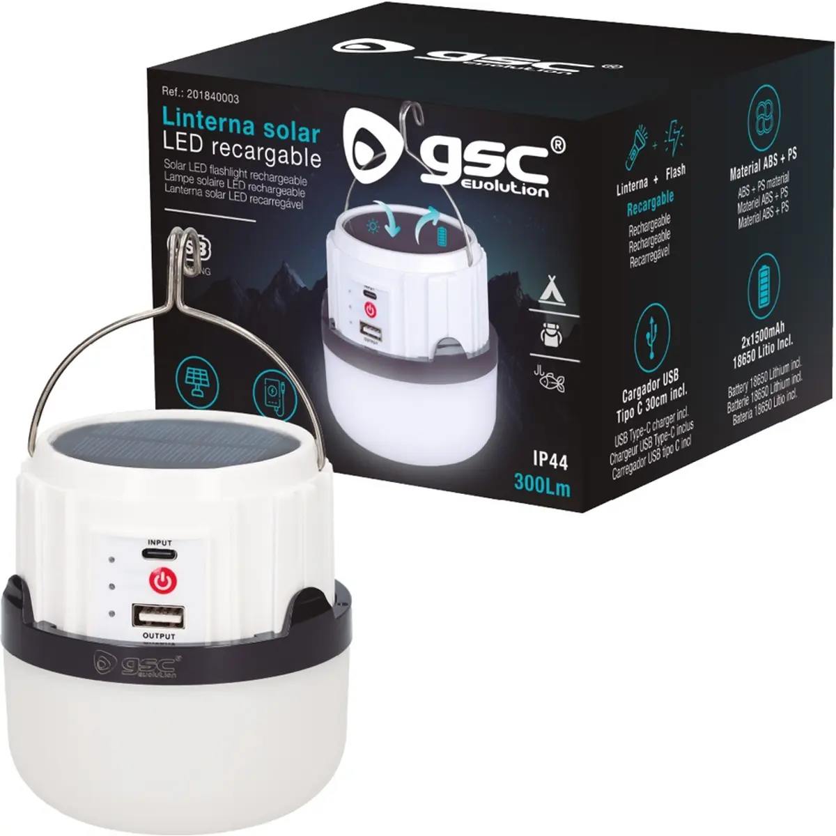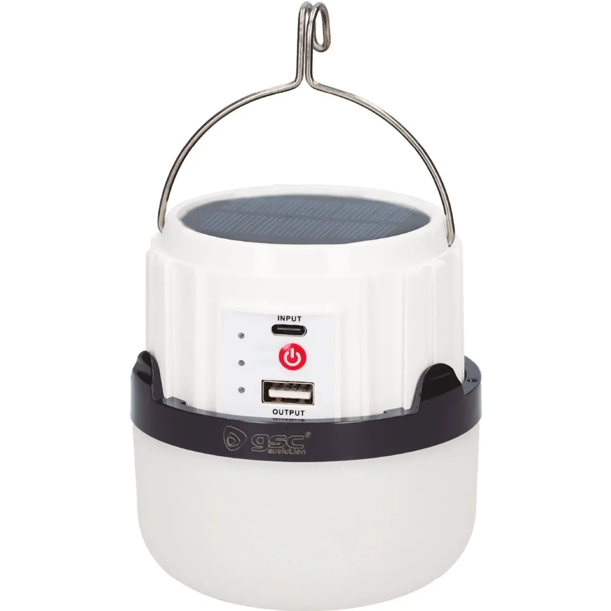 GSC Evolution - Lanterna solar LED de campismo 5W 300lm (4 modos) recarregável USB c/ powerbank - IP44