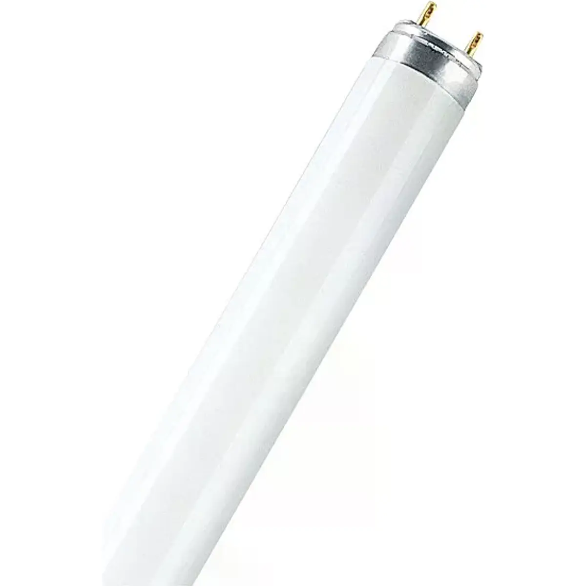 Lâmpada fluorescente linear T8 de 90 cm com potência 30,2 W e corrente de 0,360 A. Temperatura de cor de 2700 K, designação da cor: Branco Incandescente (827). Medição de fluxo integrada em esfera.