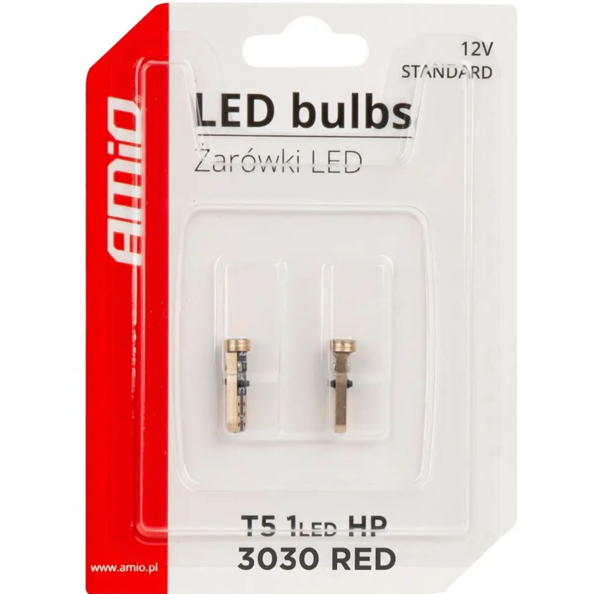 AMiO - Lâmpada LED T5 W2x4.6d 12V 0.5W 30lm [2 pcs] - VERMELHO