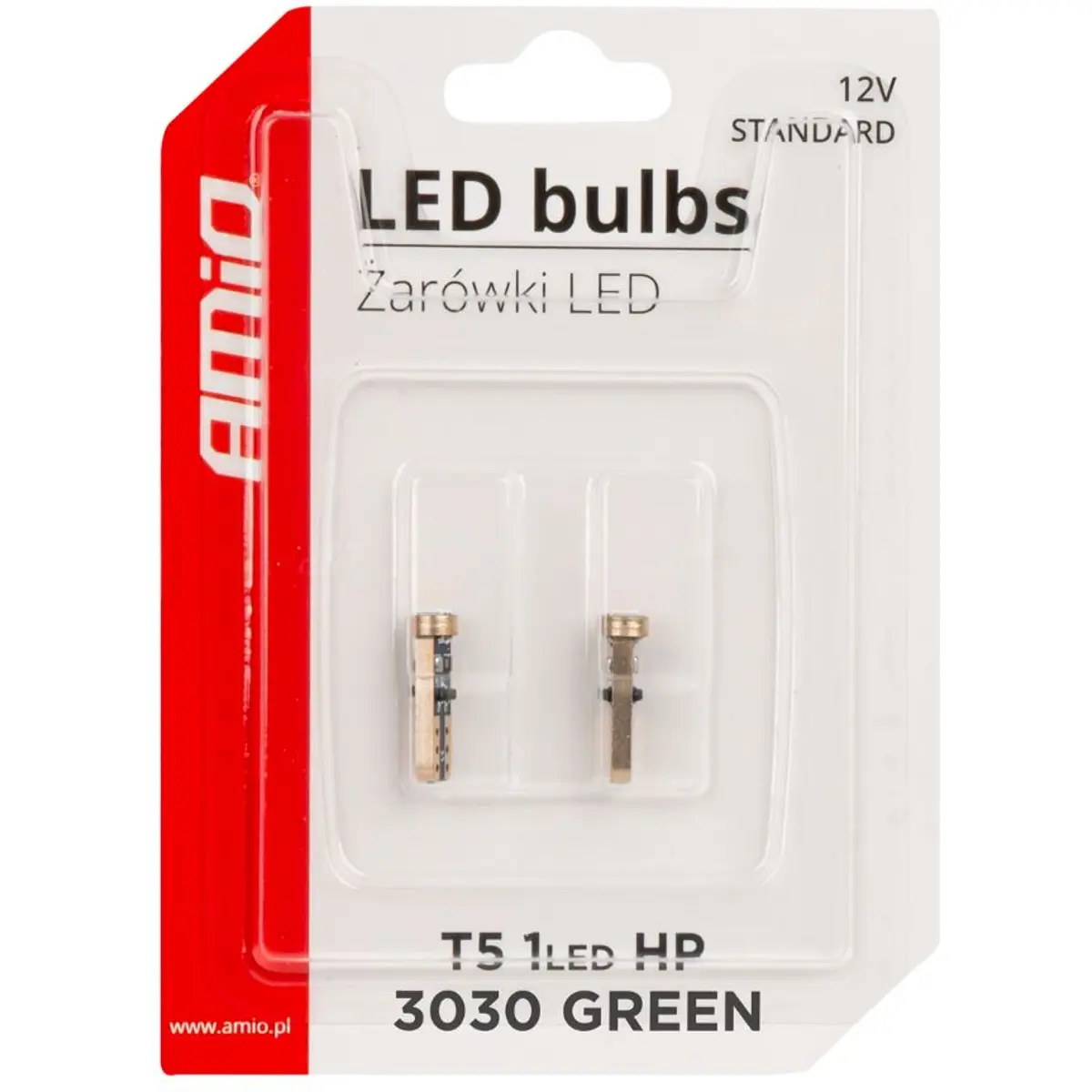 AMiO - Lâmpada LED T5 W2x4.6d 12V 0.5W 30lm [2 pcs] - VERDE