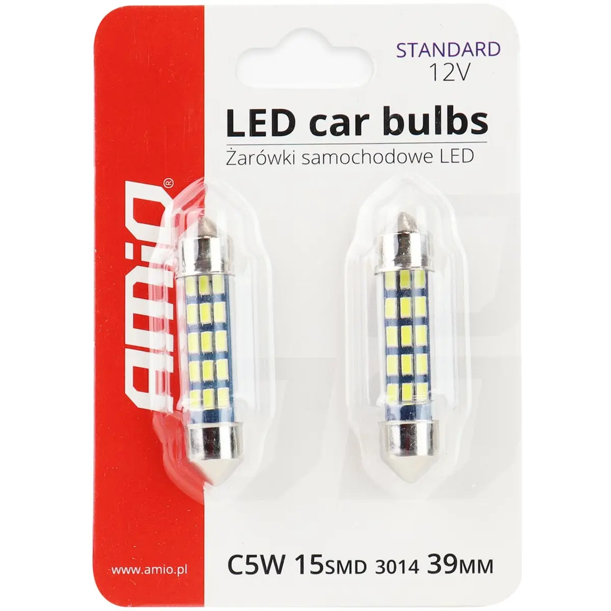 AMiO - Lâmpada LED Festoon (C5W) 15xSMD3014 12V 0.6W - corpo de vidro - 39mm