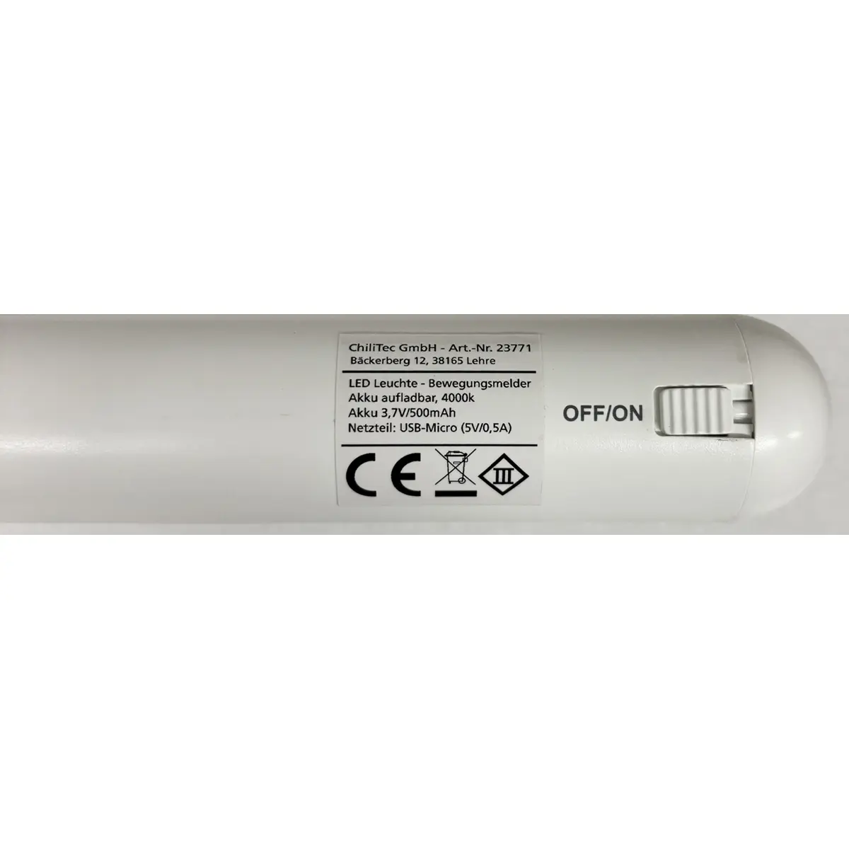Luz LED portátil e versátil, alimentada por bateria recarregável, ideal para diversas utilizações em interiores como armários, escadas, arrecadações, prateleiras, oficinas ou como lanterna de campismo. Inclui sensor de movimento PIR com ângulo de deteção de 120° e desligamento automático após 30 segundos. Carregamento fácil por cabo USB (transformador não incluído).