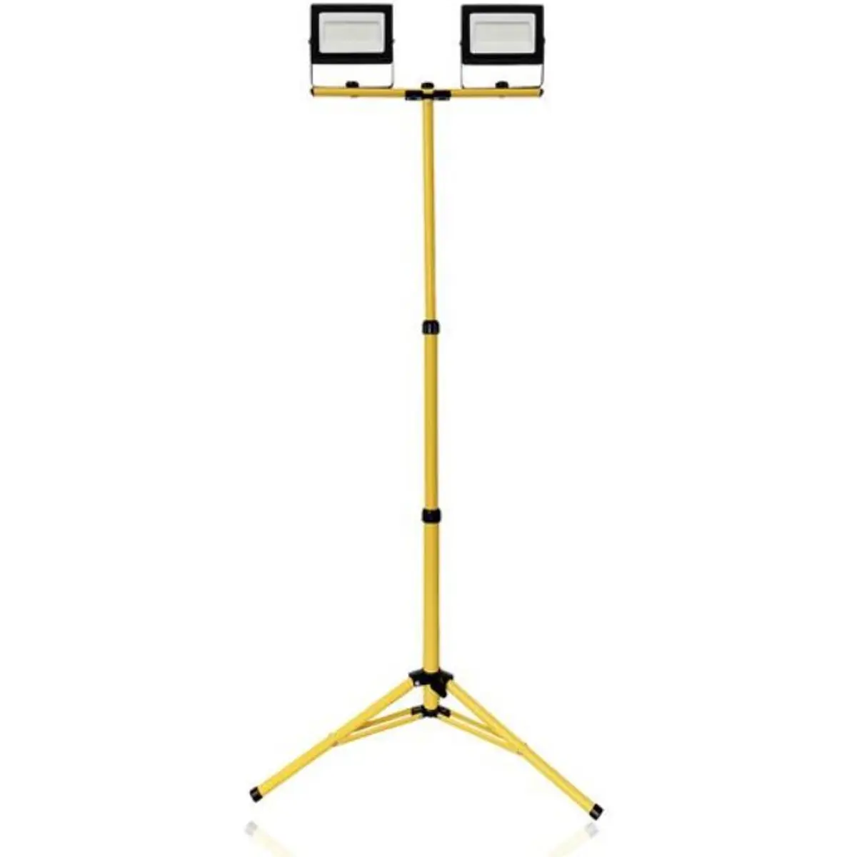 Ideal para trabalhos em interiores e exteriores que exigem boa visibilidade e conforto visual, este sistema com dois projetores LED de 50 W proporciona uma luz neutra e homogénea, perfeita para ambientes de trabalho prolongado. Com tripé telescópico estável e estrutura resistente, é uma solução prática para diversas aplicações.