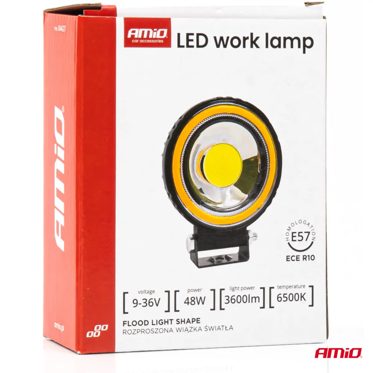 AMiO - Projetor LED de trabalho 9-36Vdc 48W 3600lm 6500K (branco frio) + Luz amarela - Ø110x38mm