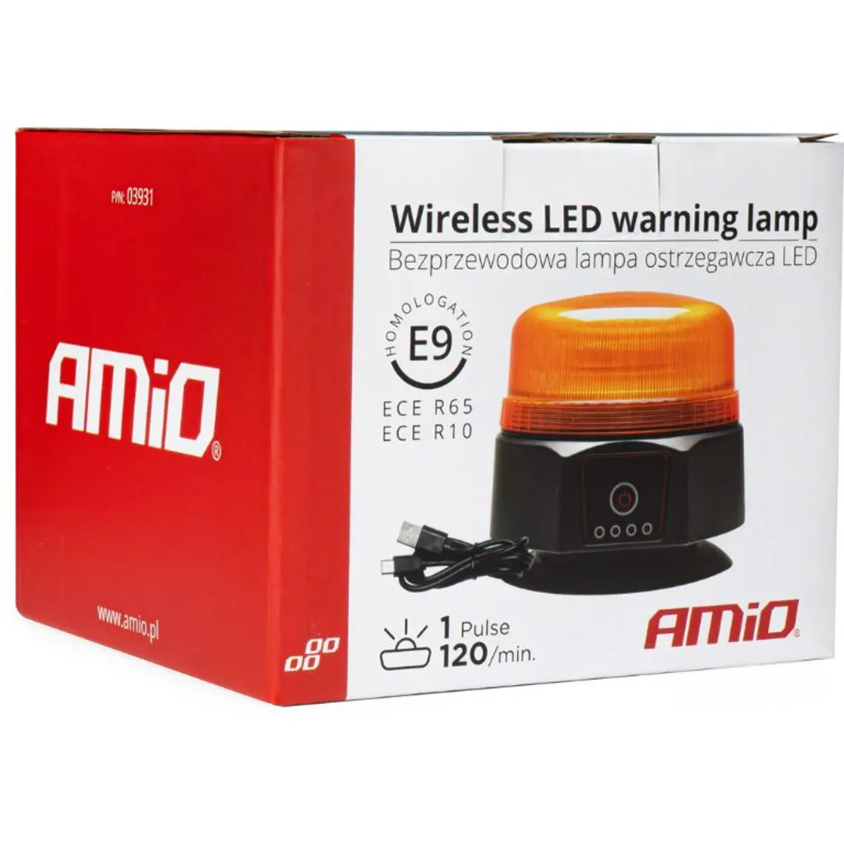 AMiO - Sinalizador (pirilampo) LED sem fios 15W estroboscópico e rotativo (magnético + ventosa) - Laranja - IP66 - Ø123x110mm