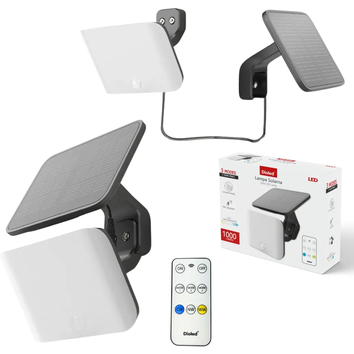 Dioled DIO-373 - Projector Solar LED CCT (3000/4000/6500K) 50W 1000lm c/ Controlo Remoto
