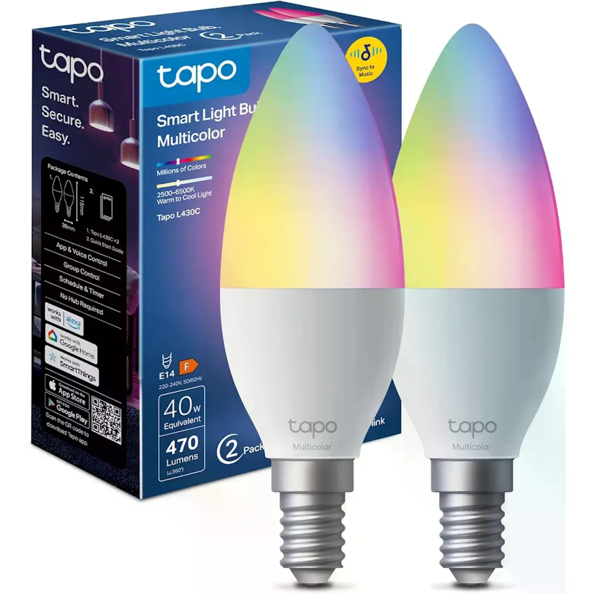 TP-Link Tapo L430C - Lâmpada LED Smart WiFi E14 RGB+W (2500 - 6500K) 470lm - (2 unid.)