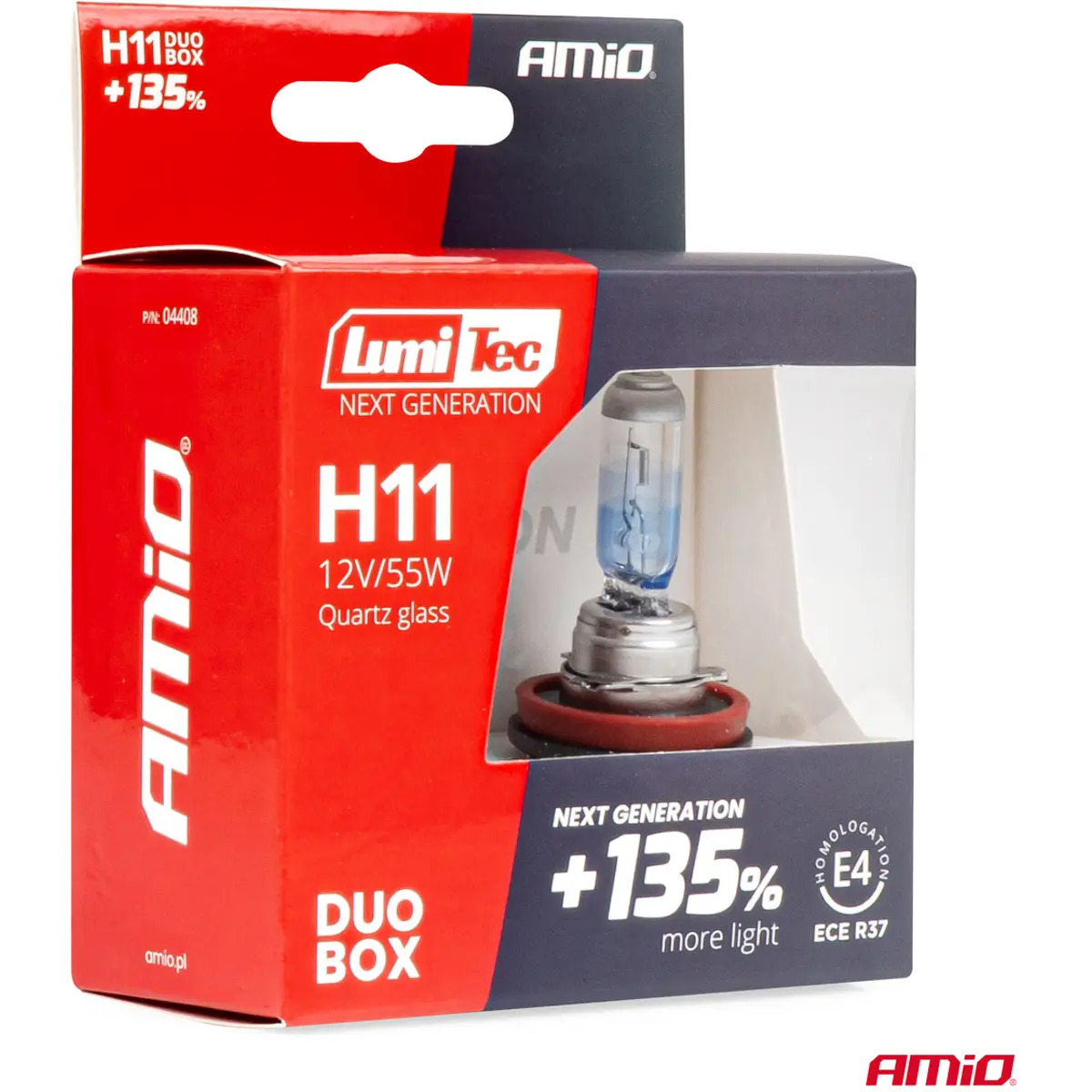 AMiO LumiTec NEXT GENERATION (+135%) - Lâmpada halogéneo H11 PGJ19-2 12V 55W [2 unid.]