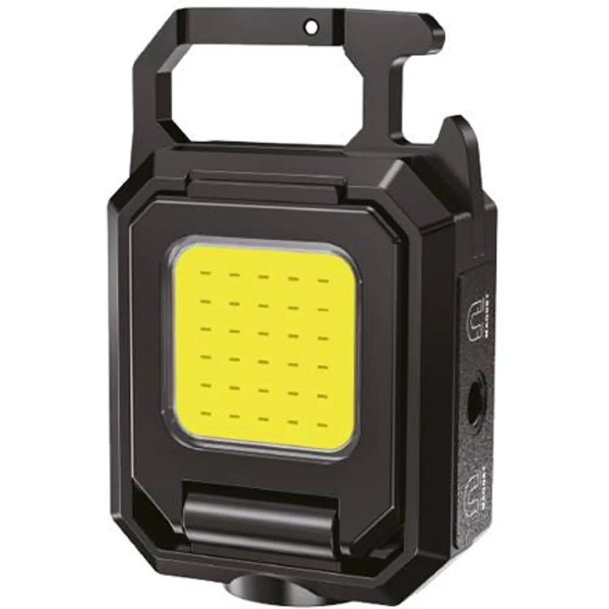 Equipada com tecnologia de iluminação COB e LED, esta lanterna disponibiliza quatro modos de funcionamento (100%, 60%, 30% e luz intermitente), adaptando-se a diferentes necessidades de iluminação. O design multifuncional inclui íman para fixação em superfícies metálicas, suporte para posicionamento em superfícies planas e mosquetão para prender a diversos acessórios. O carregamento é feito através de porta USB-C, com indicação luminosa do estado da carga, assegurando praticidade e fiabilidade.