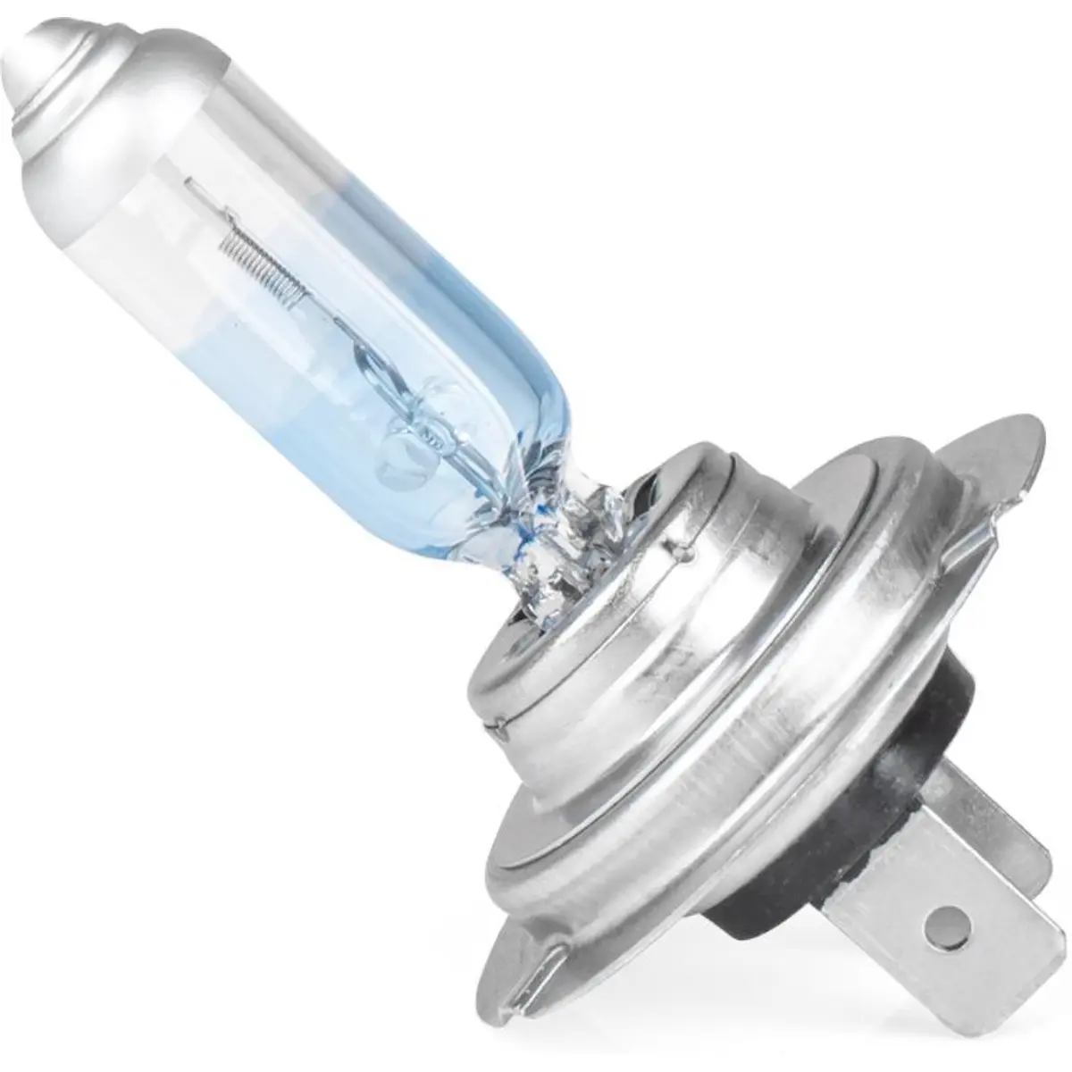 Lâmpada de alta luminosidade para montagem H7, 12V e 55W, tecnologia halogénea. Oferece até +135% de luminosidade face às lâmpadas H1, com feixe mais longo e preciso, e cor de luz branca neutra semelhante à luz do dia. Reduz fadiga ocular e melhora o reconhecimento de detalhes. Resiste a vibrações, humidade e condições adversas, com aprovação ECE R37 para uso em estrada. Conjunto DUO com duas unidades para substituição equilibrada e maior visibilidade na condução noturna.