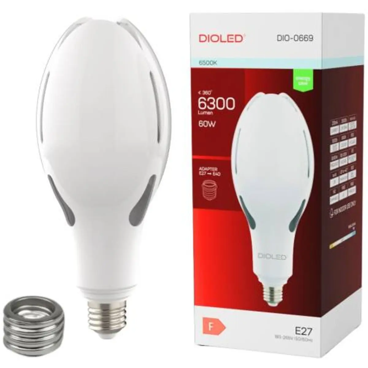 A lâmpada LED de rua DIOLED é uma solução de iluminação potente, durável e económica, ideal para iluminação pública, industrial, de parques ou zonas exteriores. Oferece elevada eficiência luminosa e baixo consumo energético, garantindo um desempenho fiável e uma iluminação uniforme em qualquer ambiente.