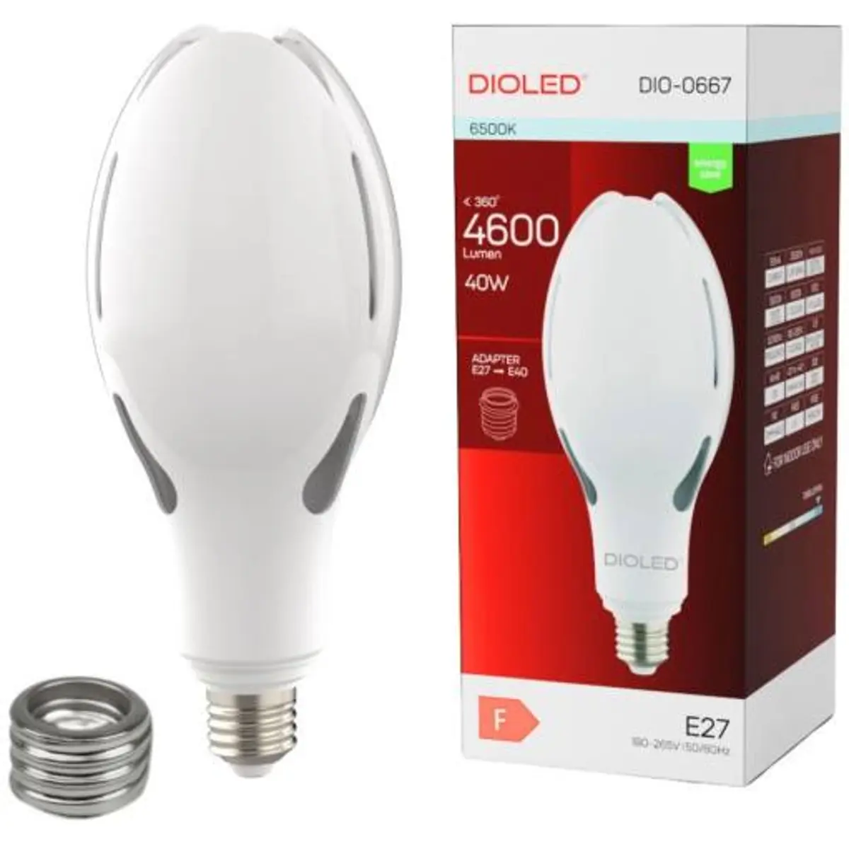 Dioled DIO-0667 - Lâmpada LED industrial E27 (c/ adaptador E40) 230VAC 40W 6500K 4600lm