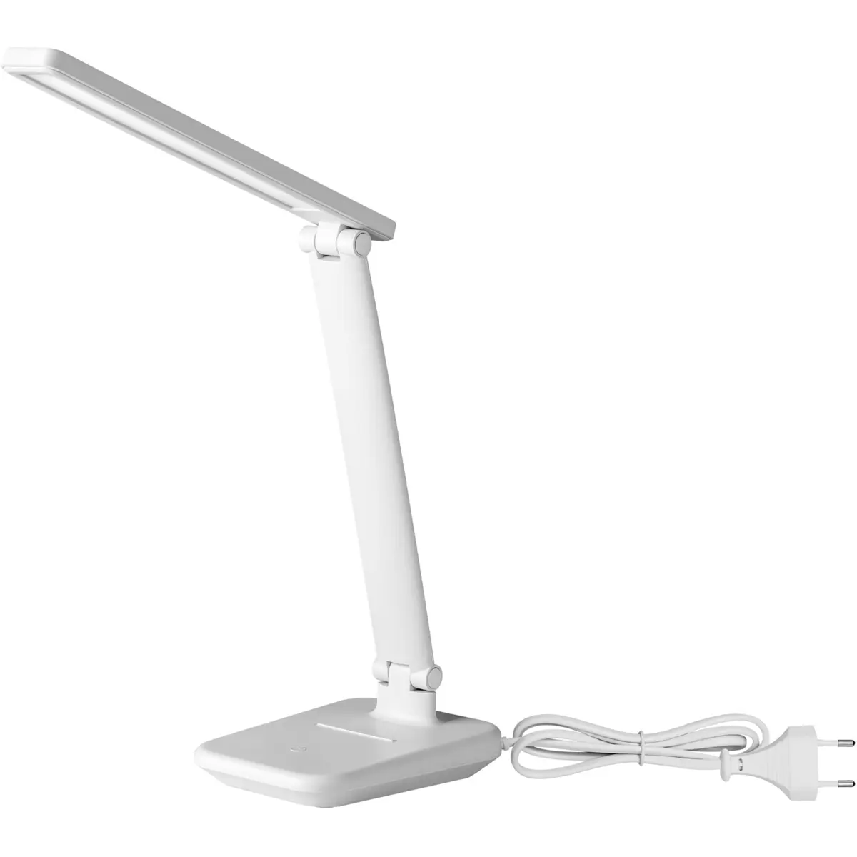 O candeeiro LED THANGO foi concebido para oferecer iluminação funcional e confortável em ambientes interiores, tanto em espaços de trabalho profissionais como em áreas de estudo em casa. Compatível com funcionamento a 230 V, integra uma fonte de luz LED de 8 W não substituível, capaz de gerar 600 lm para uma iluminação uniforme e eficiente da superfície de trabalho. Dispõe de três temperaturas de cor (3000K, 4000K e 6000K), ajustáveis conforme a necessidade: luz quente para relaxar, neutra para evitar fadiga visual e fria para maior concentração. A regulação de brilho permite adaptar a intensidade luminosa a qualquer momento do dia. O braço articulado com dois pontos de ajuste garante total liberdade de orientação da luz, podendo ser dobrado com facilidade quando necessário. A instalação é feita numa base clássica, com corpo em plástico branco. O cabo de alimentação possui 1,2 m de comprimento.