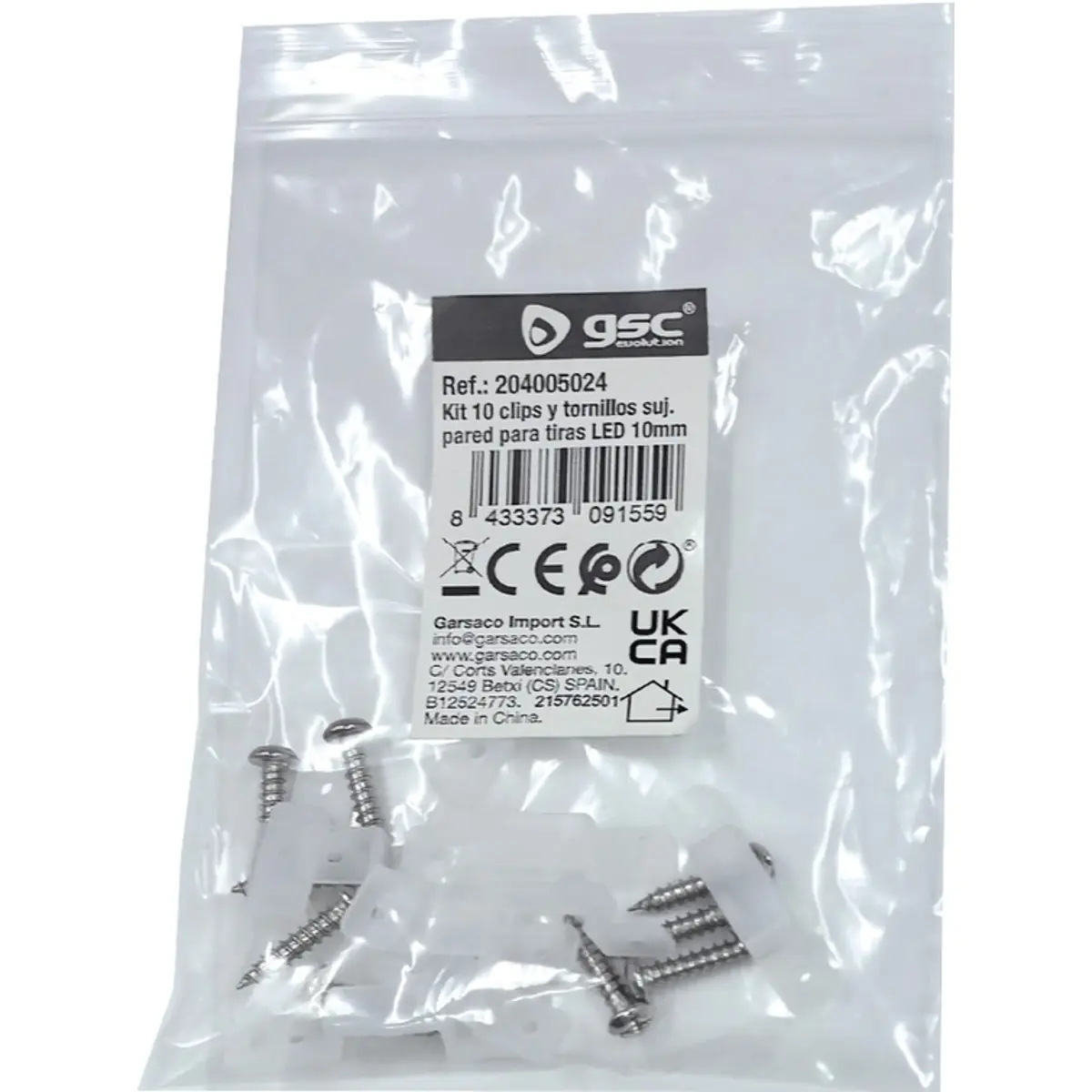 O kit de 10 clips e parafusos de fixação para fitas LED 10 mm inclui suportes e elementos de fixação que permitem segurar firmemente as fitas LED à parede ou outra superfície. Fácil de instalar e ideal para garantir uma instalação segura e discreta, este conjunto é indicado para projetos de iluminação onde a fita deve ficar alinhada e estável ao longo do percurso.