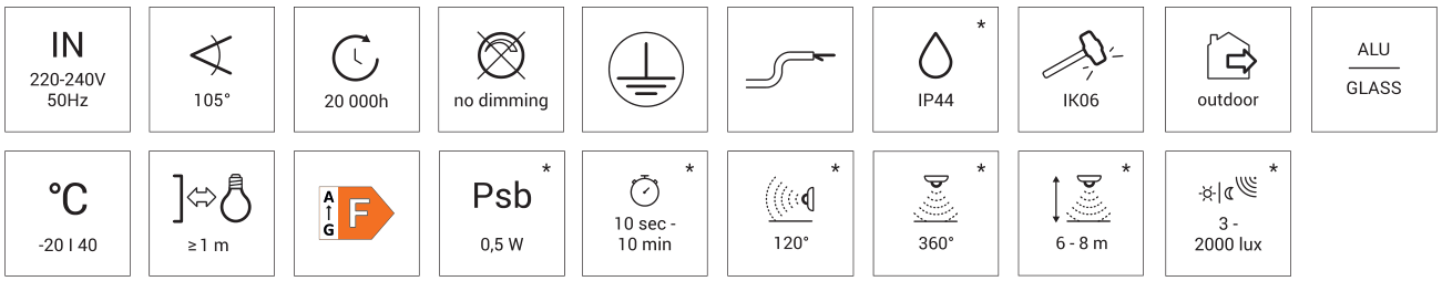 NOTA: Adequado para zonas exteriores protegidas (paredes, fachadas, alpendres, entradas). Não recomendado para exposição direta e contínua à chuva intensa.
