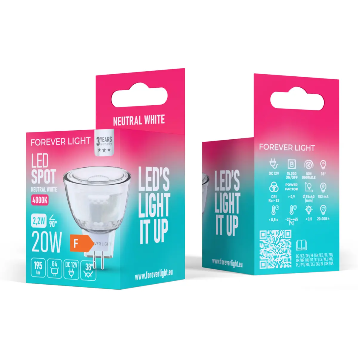 Forever Light - Lâmpada LED MR11 G4 Ø35mm 38º 12V 2.2W 4000K 195lm