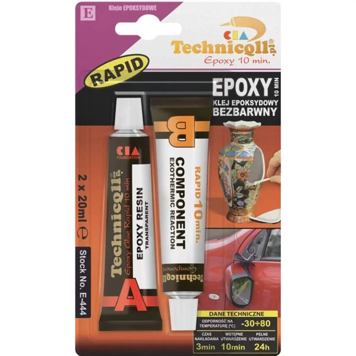 Cola epoxídica incolor com tempo de secagem rápido de 10 minutos. Fiável e eficaz para a colagem permanente de: vidro, porcelana, cerâmica, plásticos (exceto PP, PE, PTFE), pedra, betão, mármore, metais e respetivas ligas, borracha, madeira. Cola perfeitamente estas combinações de materiais. IDEAL PARA joalharia (por exemplo, para ligar âmbar a ouro ou prata); eletrónica para colar componentes; casa para reparações de emergência; mecânica automóvel (por exemplo, para selar depósitos de combustível e radiadores).