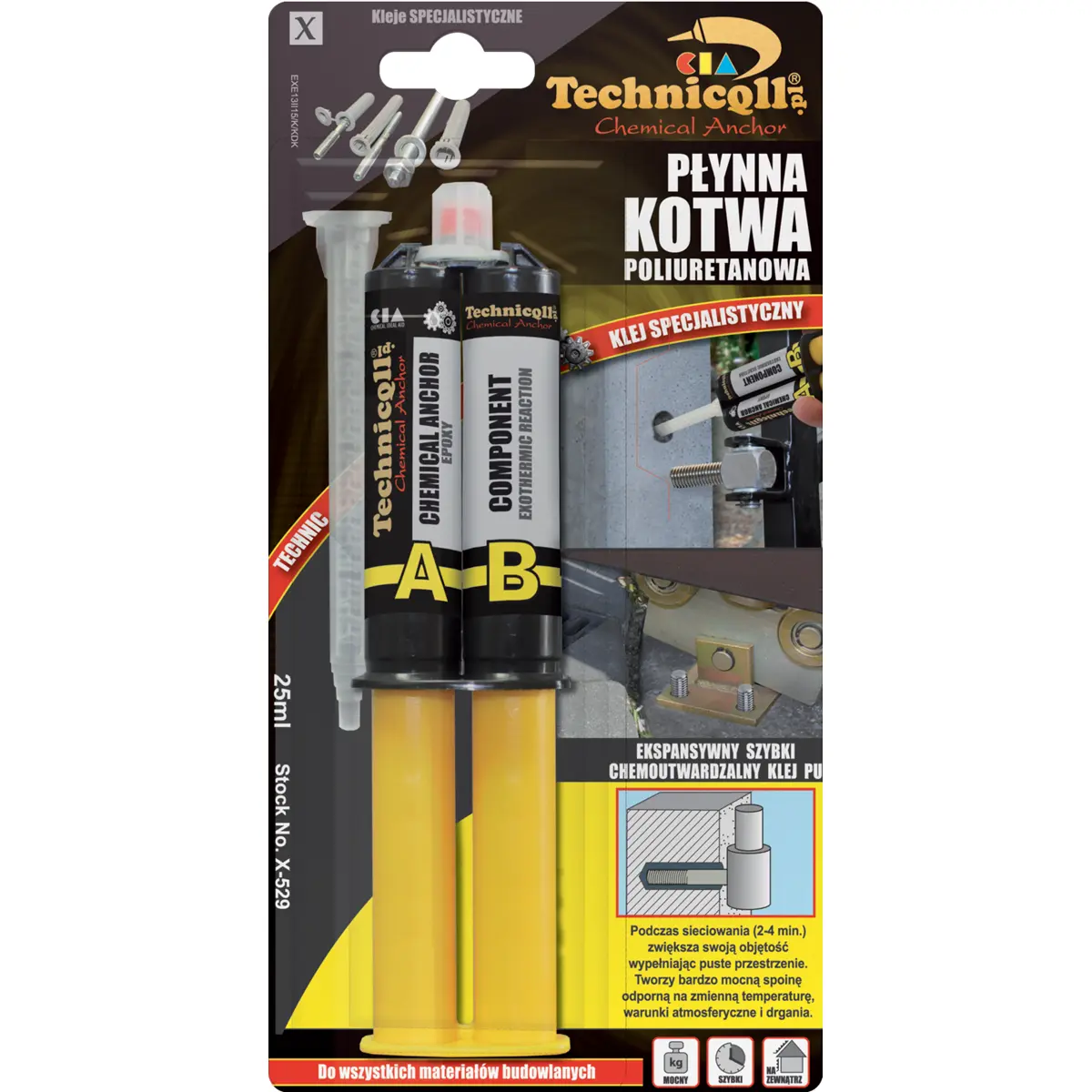 Technicqll X-529 - Cola poliuretano bicomponente (bucha química) - 25ml