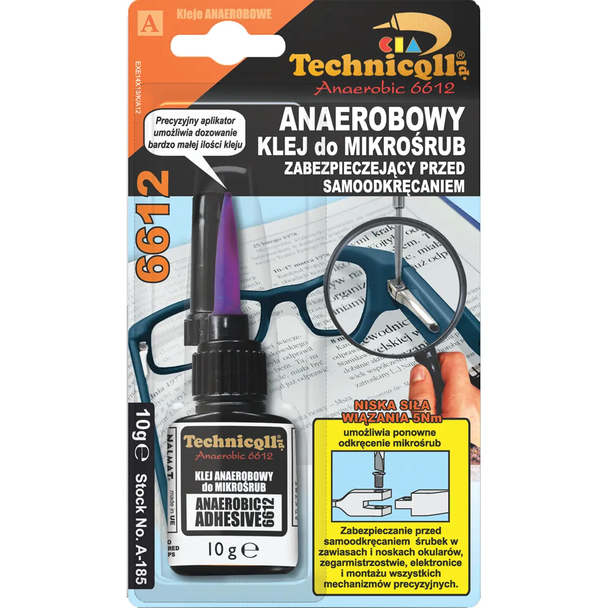 O Technicqll 6612 é uma cola anaeróbica que protege micro-parafusos contra desaperto involuntário. É resistente a vibrações e indispensável em ótica (proteção de micro-parafusos em dobradiças e ponteiras de óculos), relojoaria, eletrónica e montagem de mecanismos precisos.