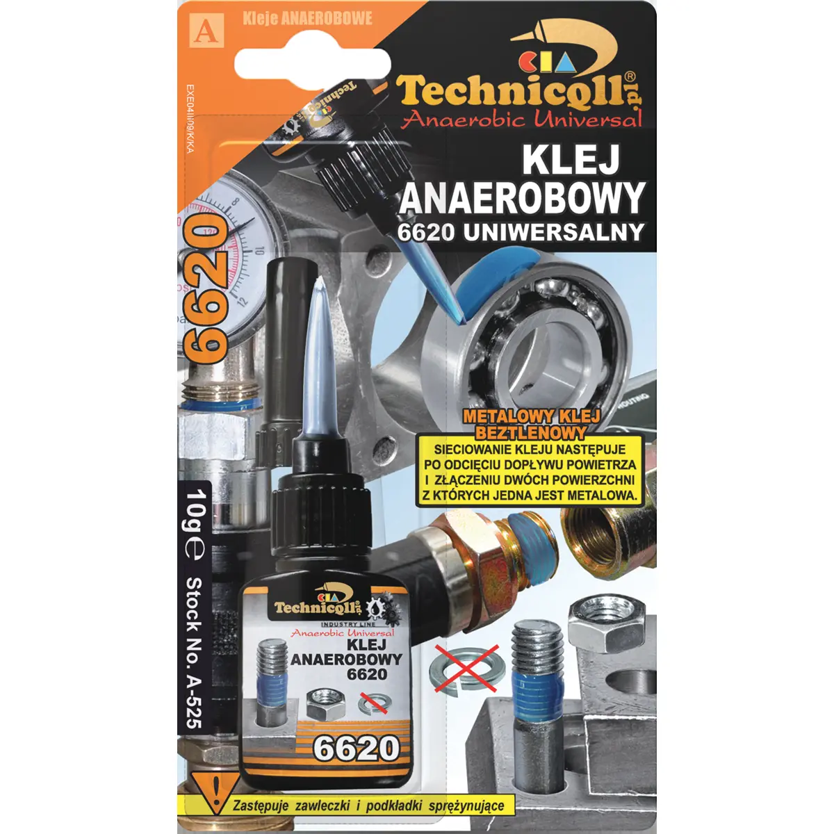 A cola anaeróbica universal é utilizado para prevenir o desaperto de parafusos e porcas durante trabalhos de conservação ou manutenção. Substitui pinos elásticos e arruelas de pressão. Após a cura, forma uma vedação sólida que previne a corrosão. Caracteriza-se por uma resistência média de ligação, permitindo a desmontagem utilizando ferramentas manuais.