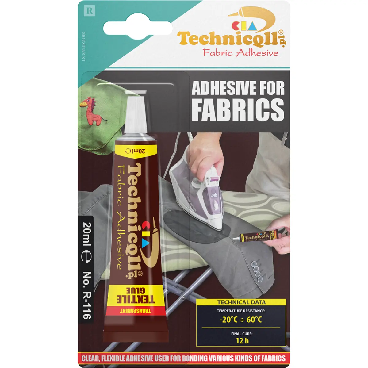 Uma cola flexível concebida para a colagem e reparação permanentes e fortes de vários tipos de tecidos (por exemplo, laminação de cortinas e remendos para roupa). Deixa uma colagem transparente. O material colado pode ser lavado a 60°C, passado a ferro e limpo.
