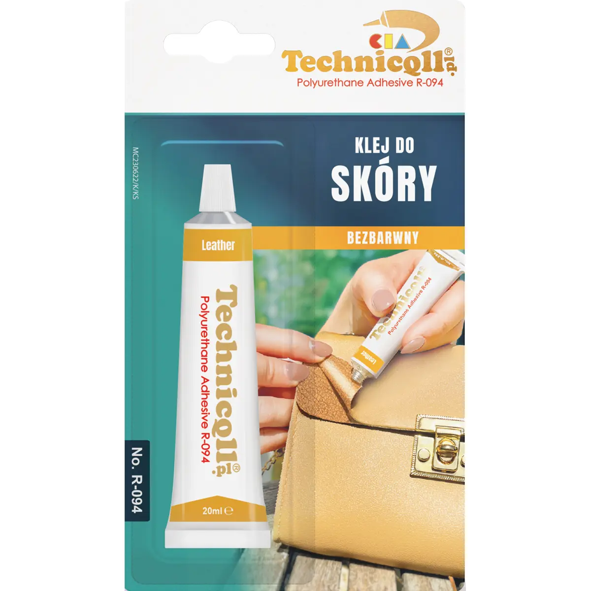 Cola monocomponente, incolor, à base de poliuretano para a colagem de couro e materiais semelhantes a couro. Cria uma união muito forte e flexível. Utilizada para colar vários tipos de couro com outros materiais utilizados em estofos e no fabrico de couro; feltro, borracha, tecidos revestidos, a maioria dos plásticos, etc. A junta adesiva é impermeável e resistente às alterações das condições climatéricas (neve, chuva, radiação UV) e da temperatura.