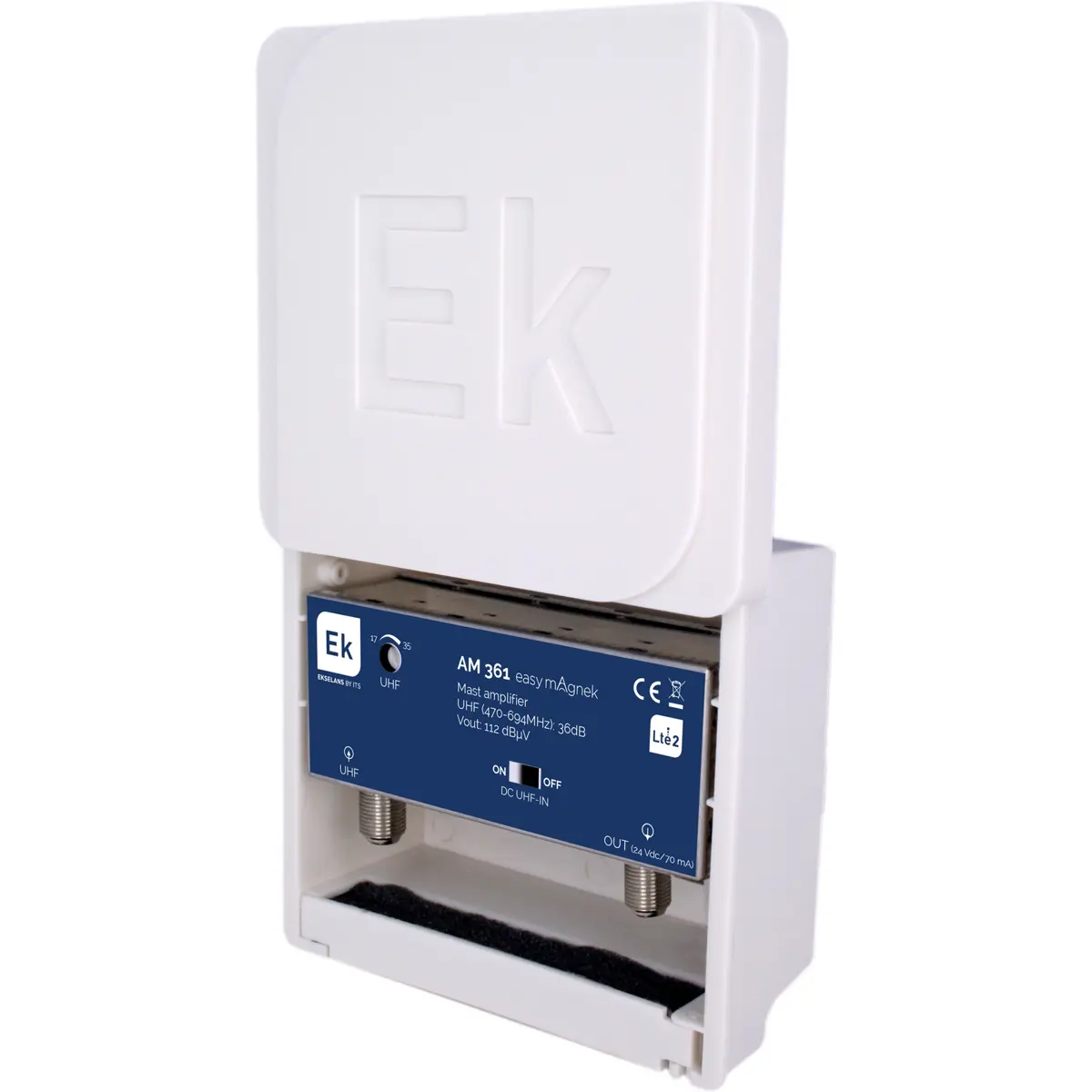 Ekselans AM361 EASY MAGNEK - Amplificador de mastro - 1 entrada [UHF] 36dB c/ filtro LTE - pré-fixação magnética