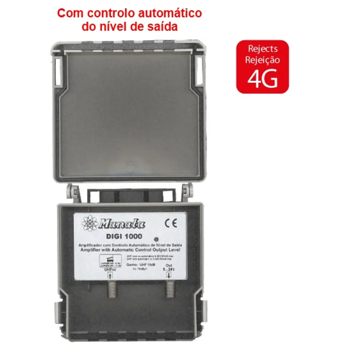 Amplificador de mastro - 1 entrada [1x UHF] + 1 saída 15dB com AGC e rej. 4G - Manata DIGI1000AGC