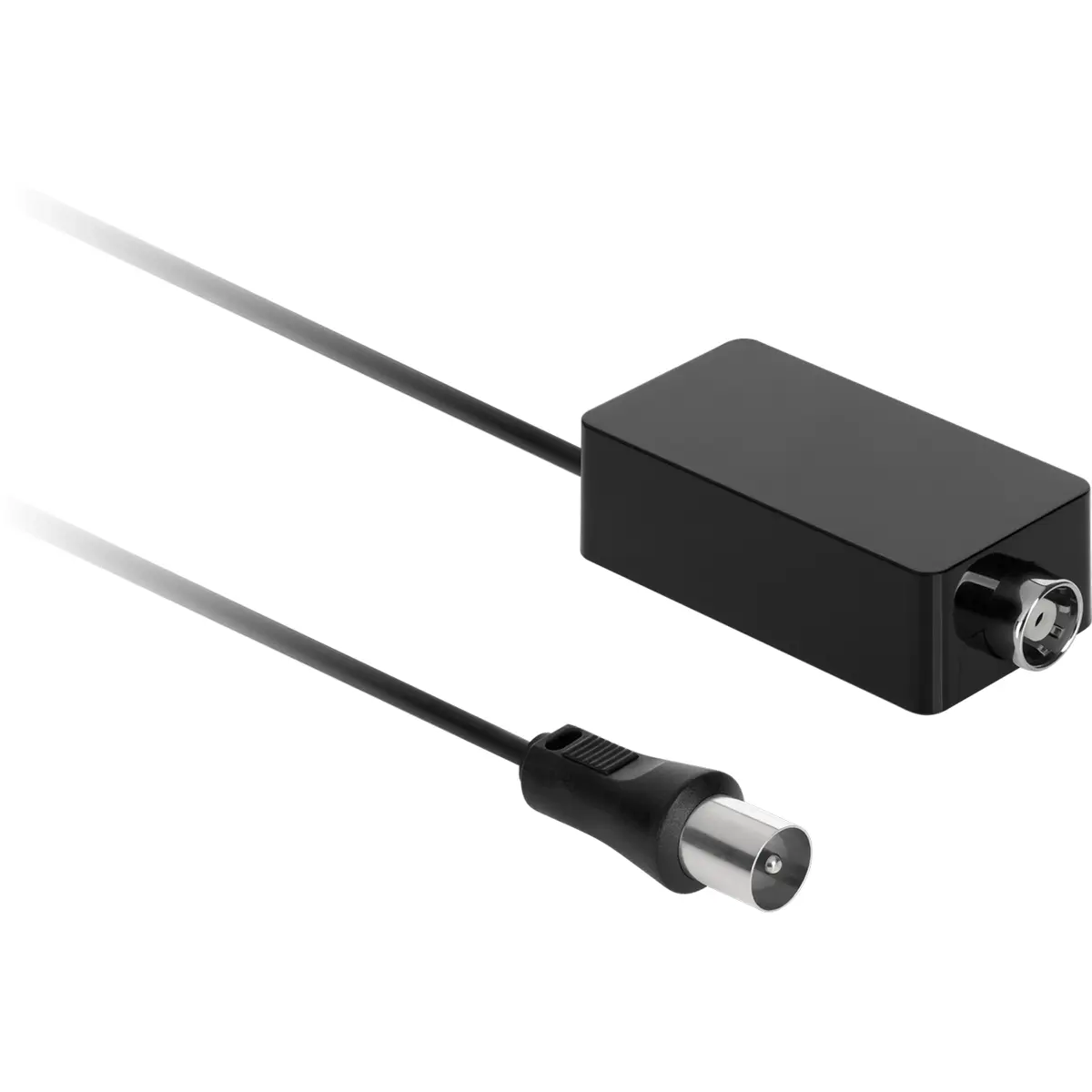 Este amplificador de interior para DVB-T potencia o sinal em ambientes fechados, cobrindo as faixas de frequência VHF (174-230 MHz) e UHF (470-790 MHz). Compatível com DVB-T, DVB-T2 e DAB+, oferece um ganho de 20 dB com uma figura de ruído inferior a 3,5 dB, impedância de 75 Ohm e alimentação de 5 VDC. A unidade admite alimentação através de 100-230 V CA e fornece 5 V DC a 550 mA, ideal para melhorar a receção de canais entre 5-12 e 21-60.