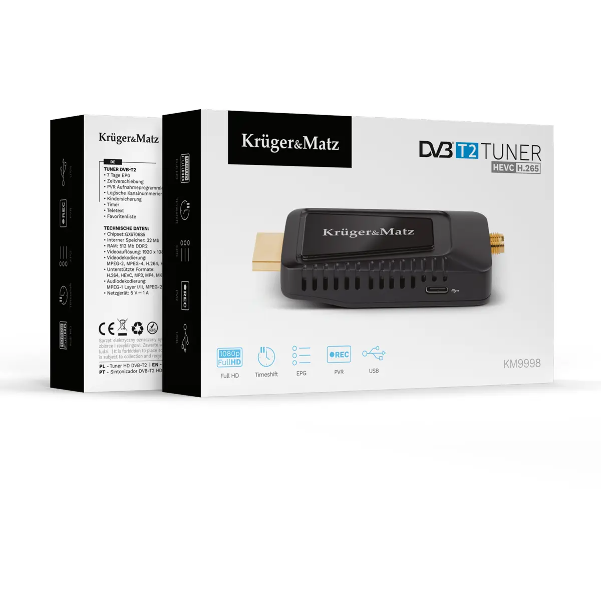 • Sintonizador DVB-T2 HDMI Krüger&Matz KM9998
