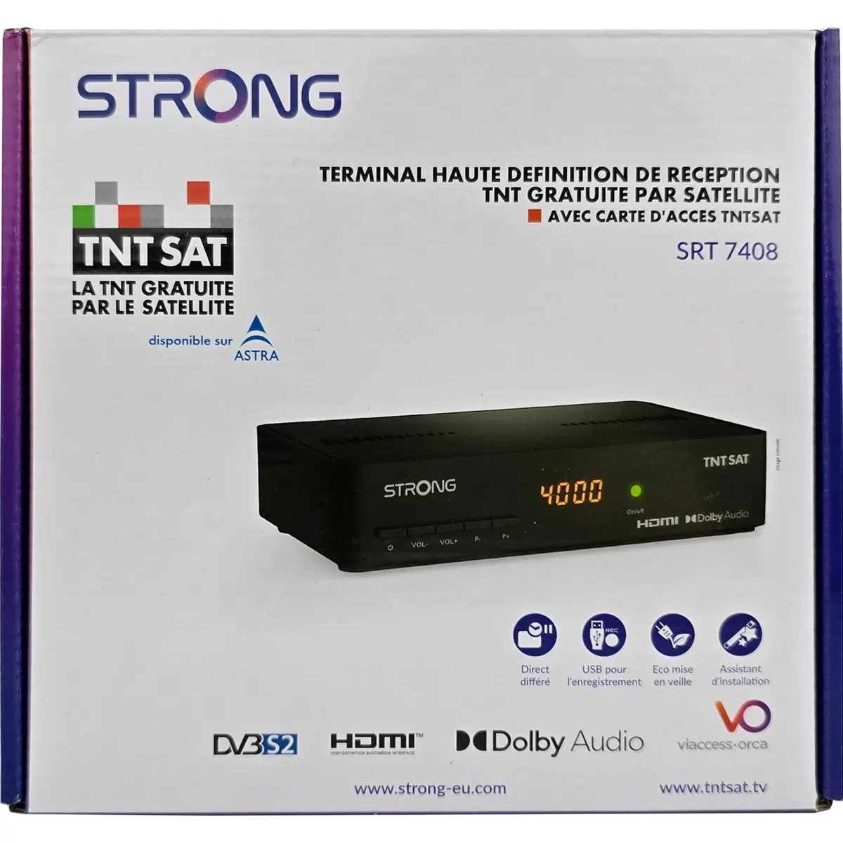 Strong SRT7408 - Receptor de satélite digital TNT SAT de canais franceses HD [12Vdc] (c/ cartão 4 anos)
