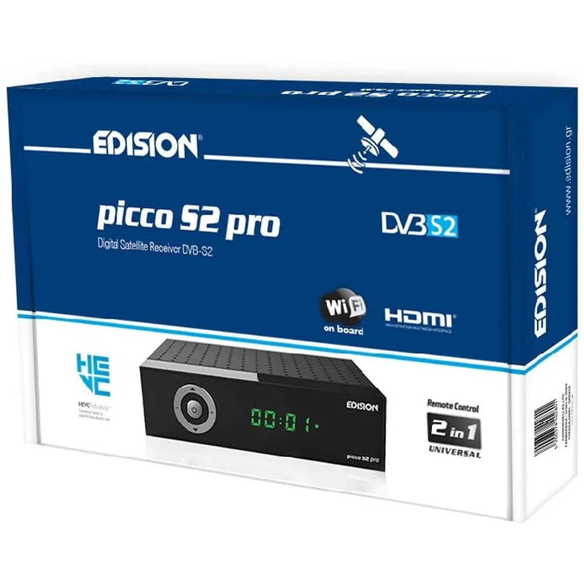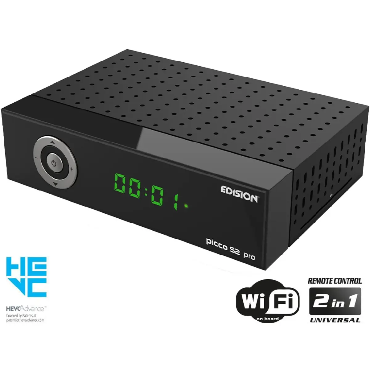 O receptor de satélite EDISION PICCO S2 Pro é um equipamento avançado com sintonizador DVB-S/S2 e suporte para H265 HEVC, proporcionando resolução de até 1080p em alta definição completa. Equipado com um processador de nova geração, oferece uma experiência inédita de troca rápida de canais e navegação pelos menus OSD e canais. Possui capacidade de armazenamento de até 6000 canais de TV e rádio. Além disso, possui um módulo WiFi integrado de 100 Mbps para acesso a Web Apps (YouTube, Stalker TV, Xtream, WebTV, Shoutcast, Dailymotion, Weather) e visualização desses conteúdos em uma TV convencional. Também suporta a tecnologia UNICABLE e UNICABLE 2, proporcionando maior flexibilidade na recepção de sinais de satélite, em conjunto com os canais MULTISTREAM. Este receptor oferece recursos avançados de Media Player, incluindo suporte ao conteúdo H265 HEVC. A porta USB multifuncional incorporada permite funções de PVR (gravação de programas favoritos), reprodução de arquivos de imagem, áudio e foto, além de atualizações de software para manter o PICCO S2 Pro sempre atualizado. A experiência diária de uso também foi aprimorada com um novo display LED e design no painel frontal, além de 5 teclas elegantes para funções específicas na tela LED, proporcionando facilidade de uso moderna e conveniência no dia a dia. As vantagens começam logo ao abrir a embalagem de fábrica do PICCO S2 Pro, que também inclui o novo controle remoto 2 em 1 Universal EDI-RCU 4 learn, ergonomicamente projetado, com botões grandes para operar o receptor e quatro funções de TVs LG/SAMSUNG(*), que são programáveis de forma livre! Tudo isso para um uso mais divertido e agradável das muitas funções favoritas. Acompanha garantia e suporte EDISION.