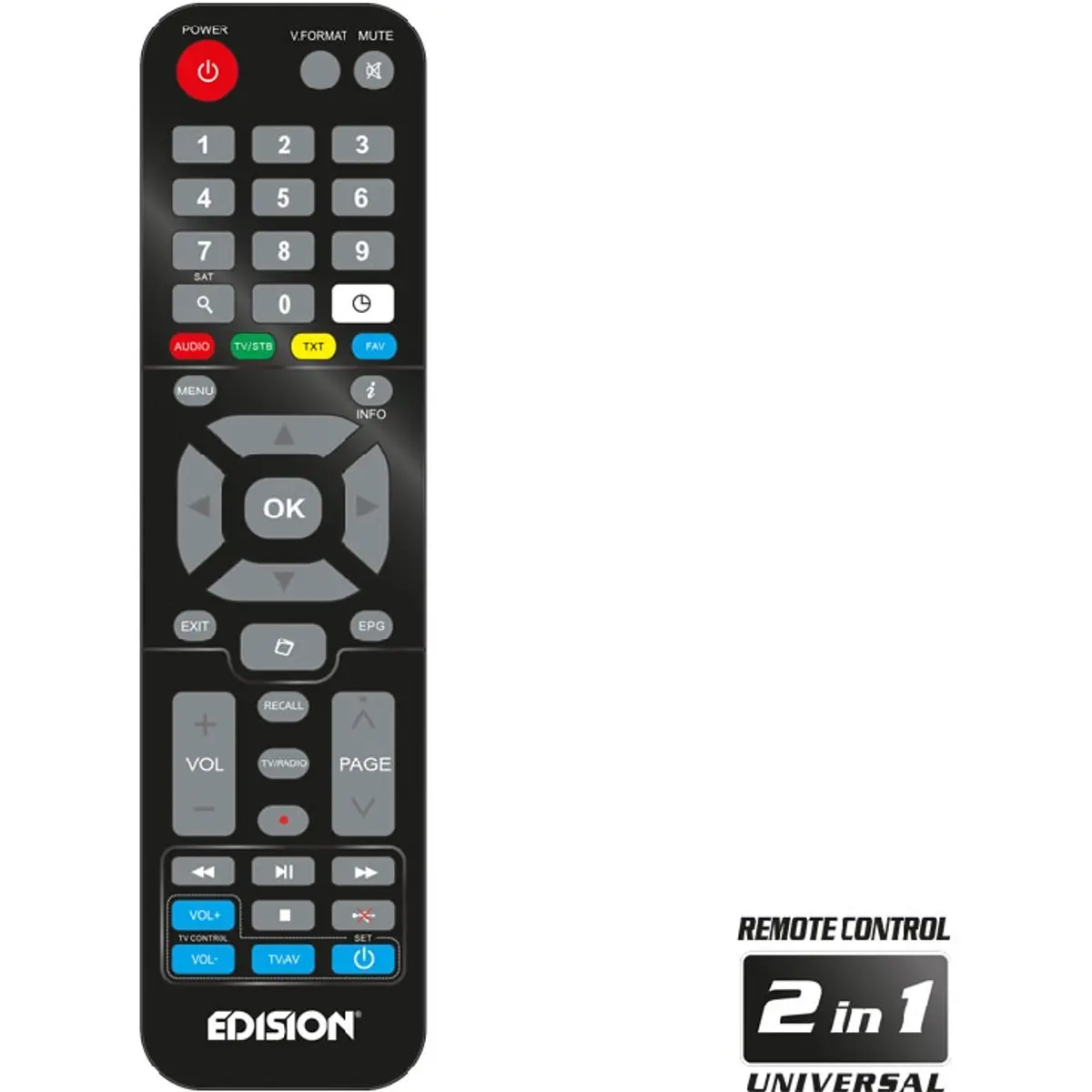 - Controle Remoto Universal 2 em 1 para STB & TV