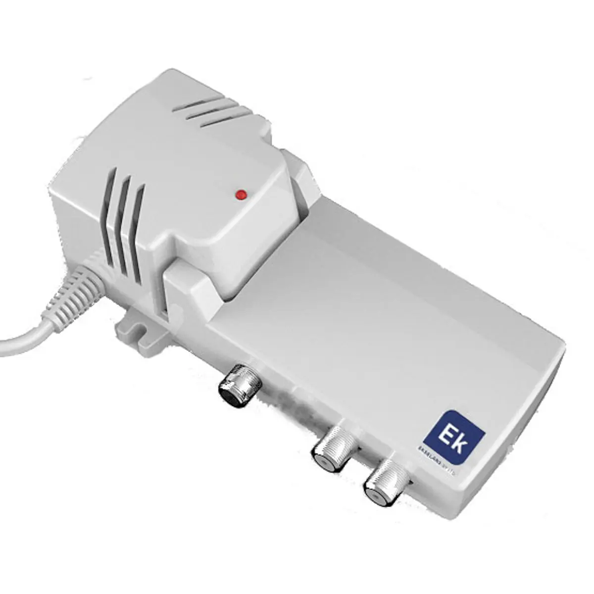 Fonte de alimentação de 24VDC com duas saídas para amplificadores de mastro, que fornece até 110mA de corrente a partir de uma alimentação de 230+/-10% VAC. Suporta frequência de funcionamento entre 47 e 862MHz e apresenta perdas de passagem inferiores a 4 dB. Ideal para sistemas de RF que exigem uma fonte estável, com tolerância de entrada e desempenho elétrico previsível, assegurando fiabilidade em aplicações de transmissão e distribuição de sinal no mastro.