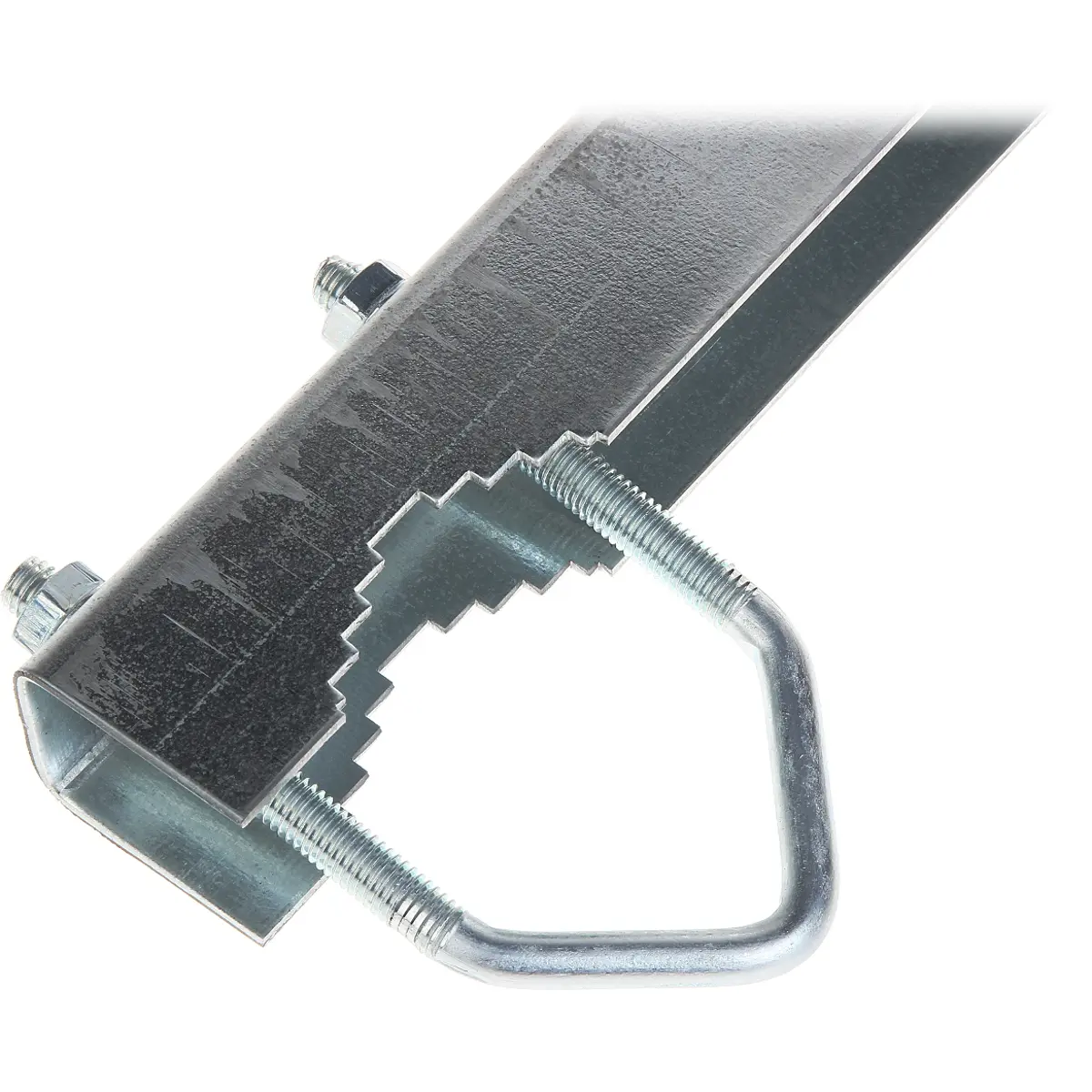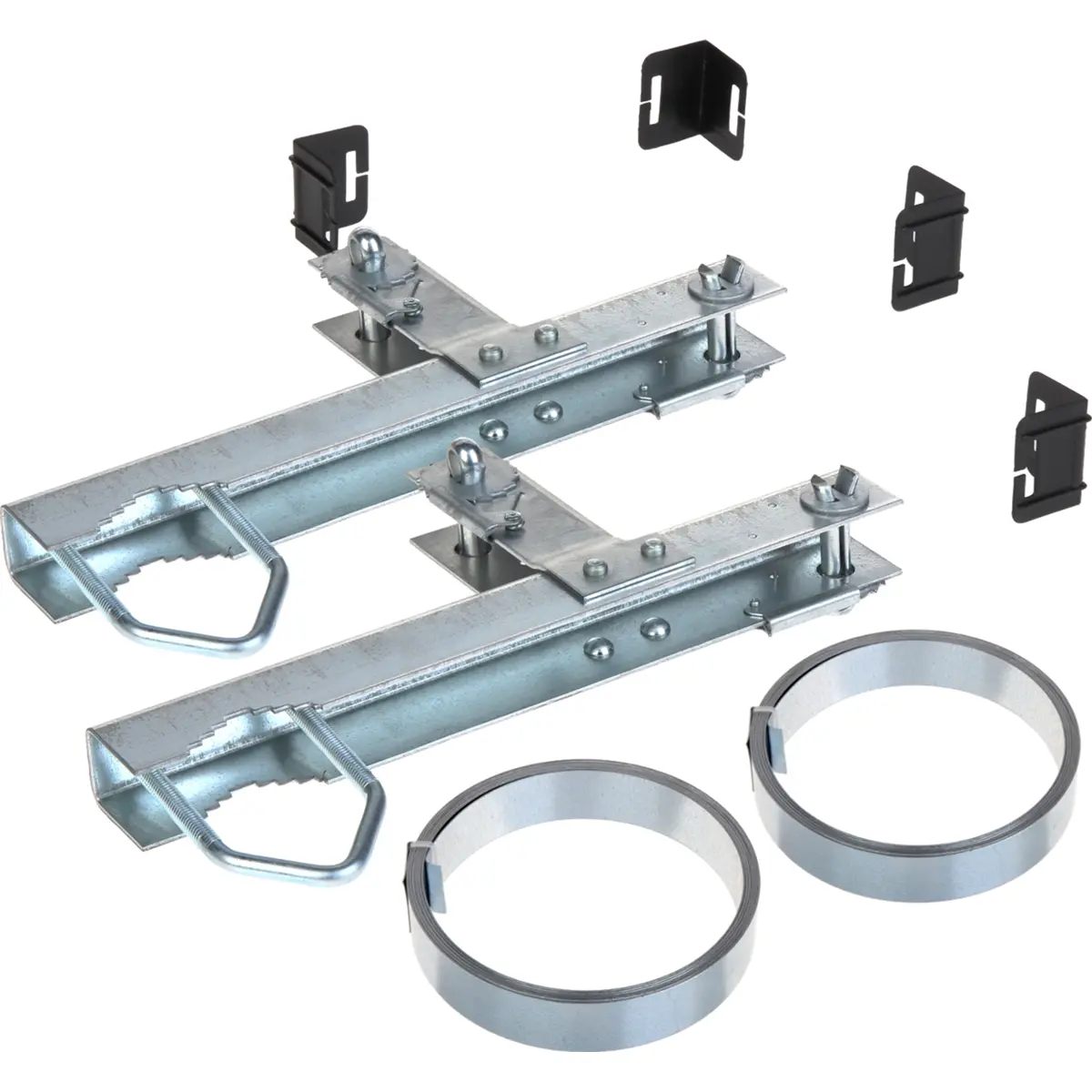Esta abraçadeira de grampo dupla para chaminé permite fixar mastros de até 43 mm de diâmetro, ideal para antenas maiores ou parabólicas. Fabricada em aço galvanizado, inclui fita de 2x5 m com espessura de 0,5 mm e largura de 26 mm, mantendo uma distância de 0,15 m entre o mastro e a chaminé. A montagem envolve inserir 30 cm de fita na cavilha e fixar com a lingueta, oferecendo robustez e fácil ajuste em estruturas verticais.
