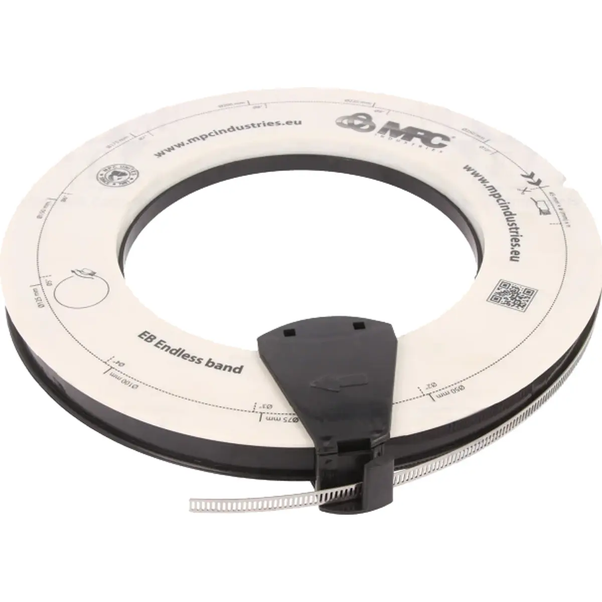Abraçadeira de fita metálica ideal para o corte de abraçadeiras á medida. Com largura da banda 8 mm.