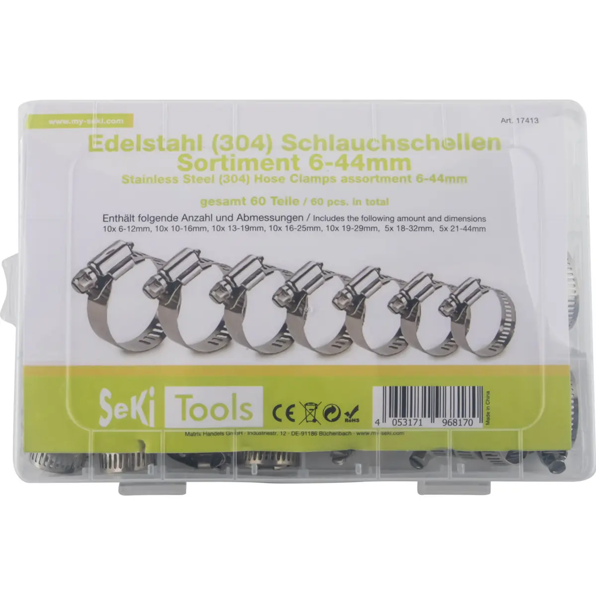 Conjunto de 60 abraçadeiras metálicas de parafuso para mangueira Ø6-44mm