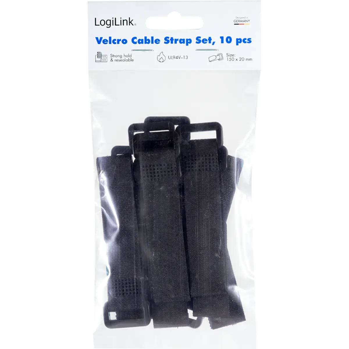 Logilink KAB0056 - Abraçadeiras de velcro com presilha em plástico 150x20mm - Preto - [10unid.]