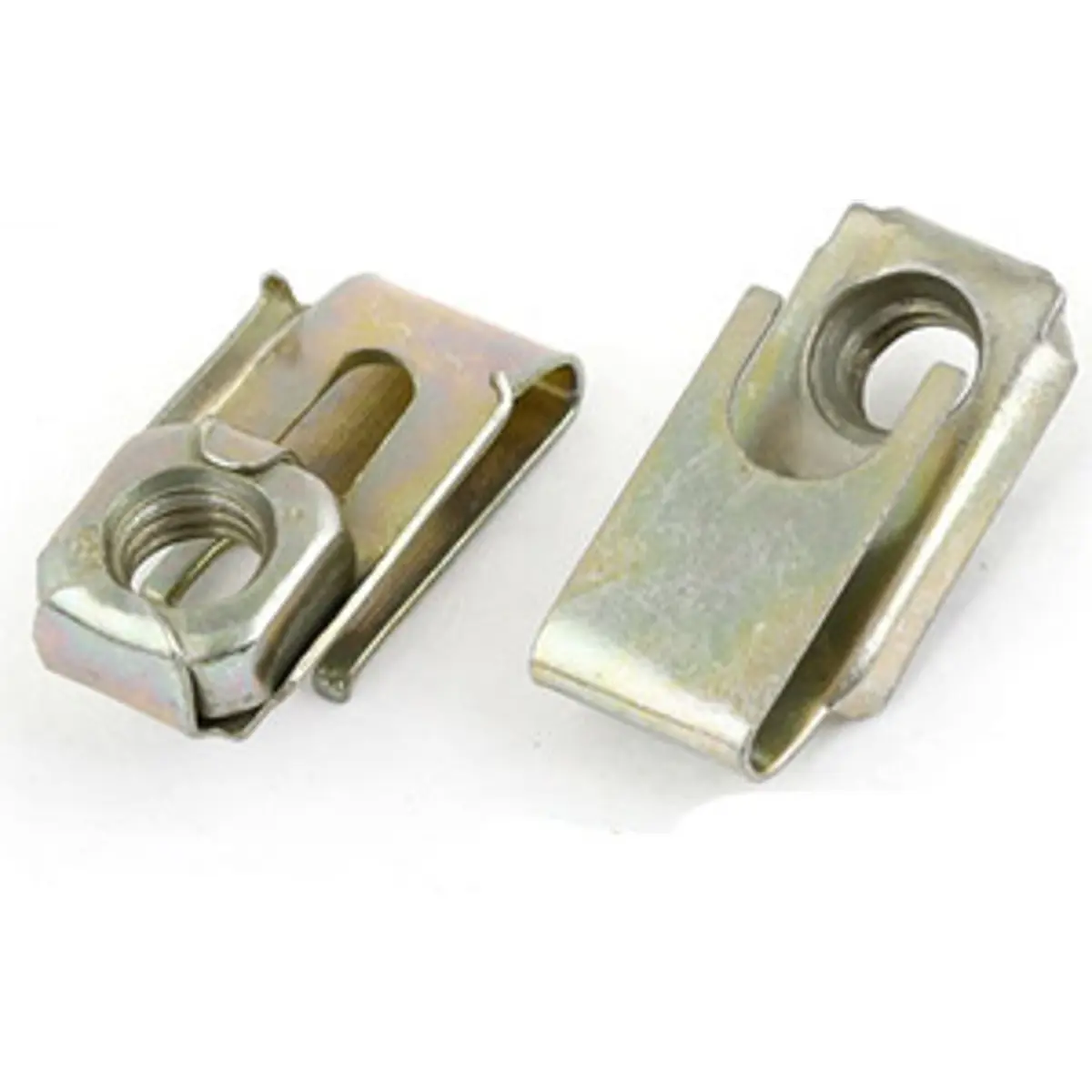 Fixação universal em forma de U para automóveis, ideal para prender painéis, quadrantes e grelhas. Inclui porca fixa para parafusos M6, garantindo montagem estável. Dimensões compactas de 23x12,4x10,5 mm permitem instalação discreta no interior do veículo, oferecendo uma solução simples para fixar componentes metálicos com parafusos M6.