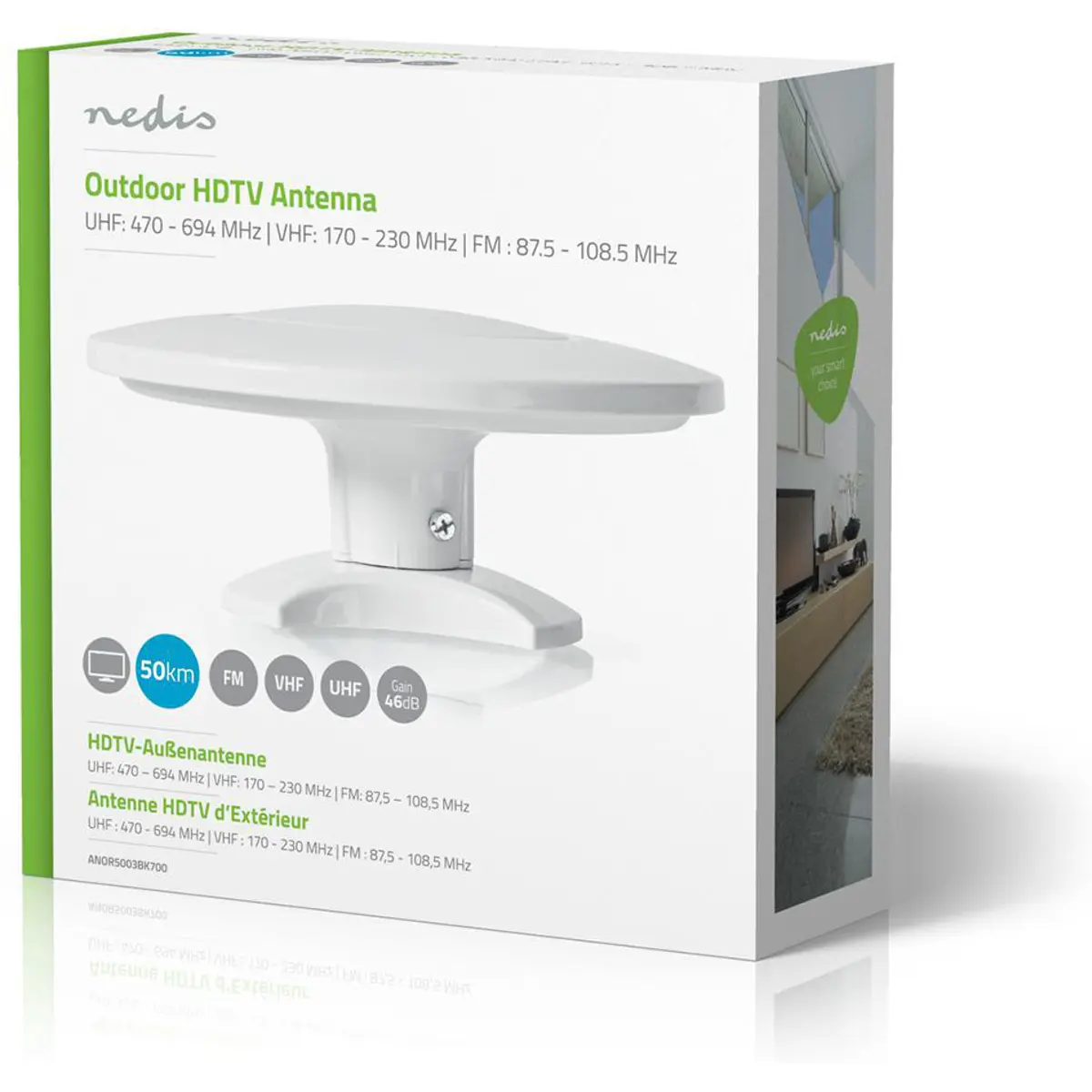 Esta antena Nedis® DVB-T / T2 para exterior garante recepção estável de canais TDT e sinais de rádio FM. A antena possui um design compacto e elegante que se integra a qualquer interior, sem chamar muita atenção.