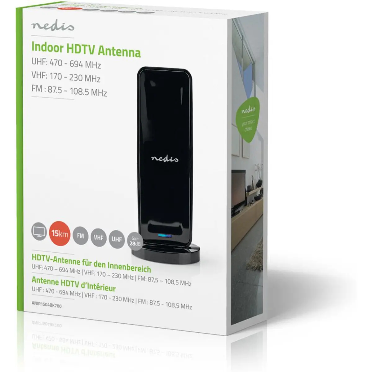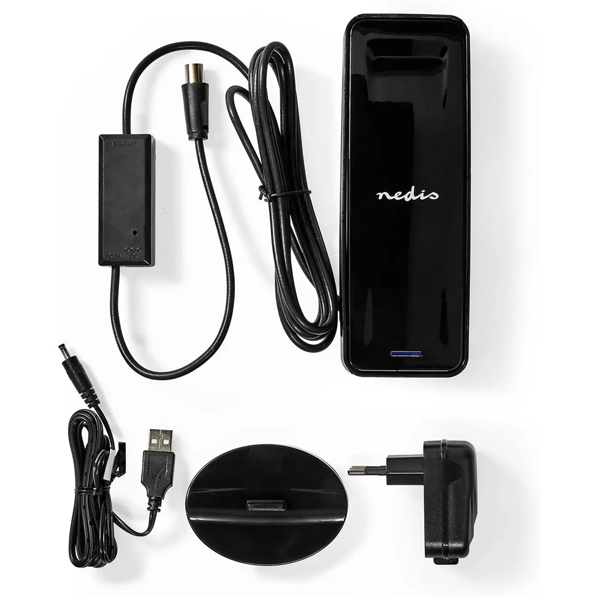 Esta antena de interior Nedis® DVB-T / T2 garante uma recepção estável TDT e sinais de rádio FM. A antena possui um design compacto e elegante que combina com qualquer interior, sem atrair muita atenção.