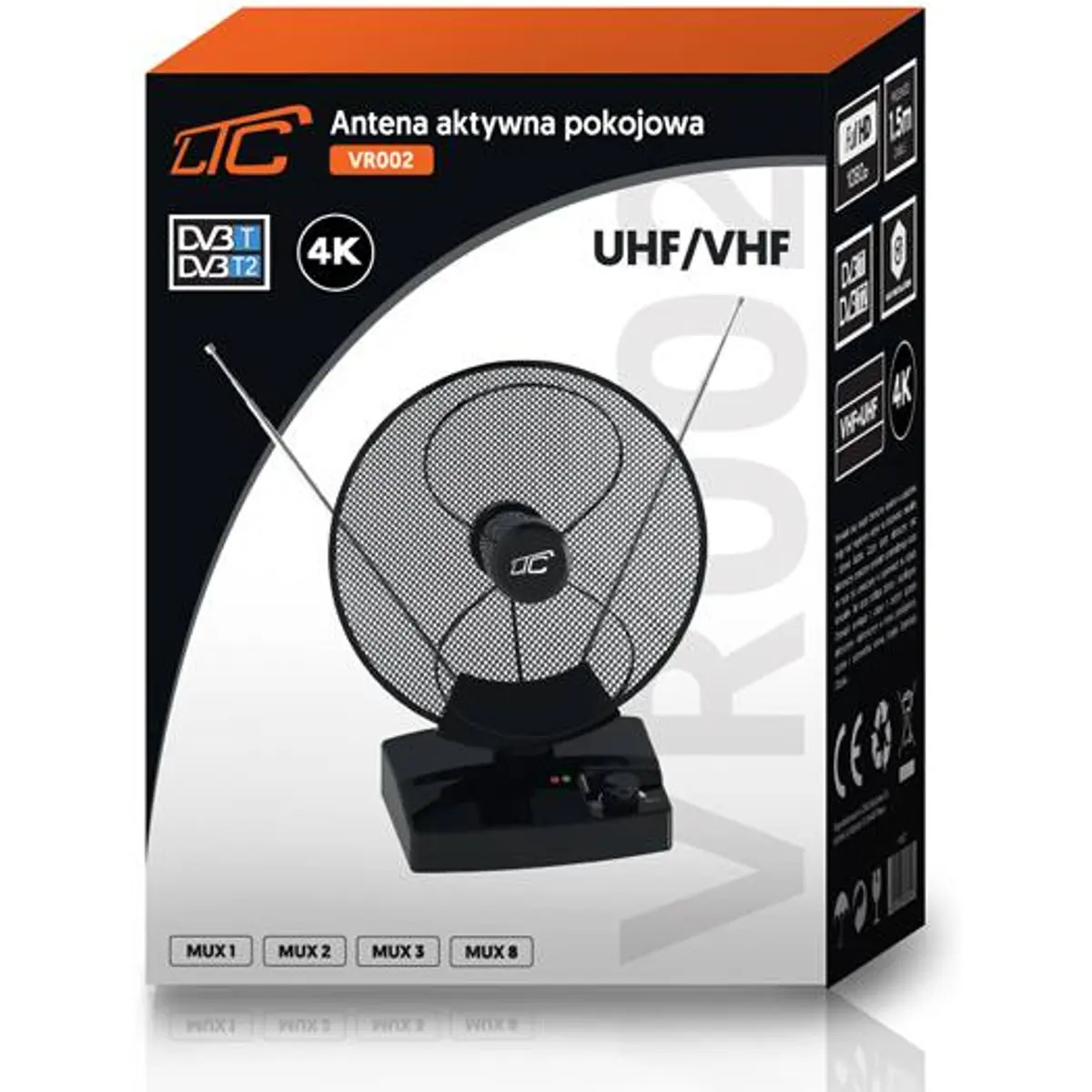 LTC VR002 - Antena TV Terrestre amplificada TDT VHF/UHF 4K FHD 25dB c/ filtro LTE - preto