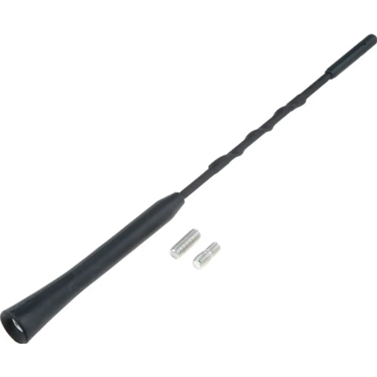 Antena auto-rádio AM/FM externa de 240 mm, com adaptadores para roscas M5 e M6, compatível com várias marcas automóveis. Ideal para melhorar a receção de sinais AM e FM em veículos, resistente a condições exteriores. Facilita a instalação com conectores de rosca intercambiáveis e oferece desempenho estável em diferentes ambientes. Compatibilidade ampla sem referência a uma marca específica, assegurando versatilidade para diferentes modelos.