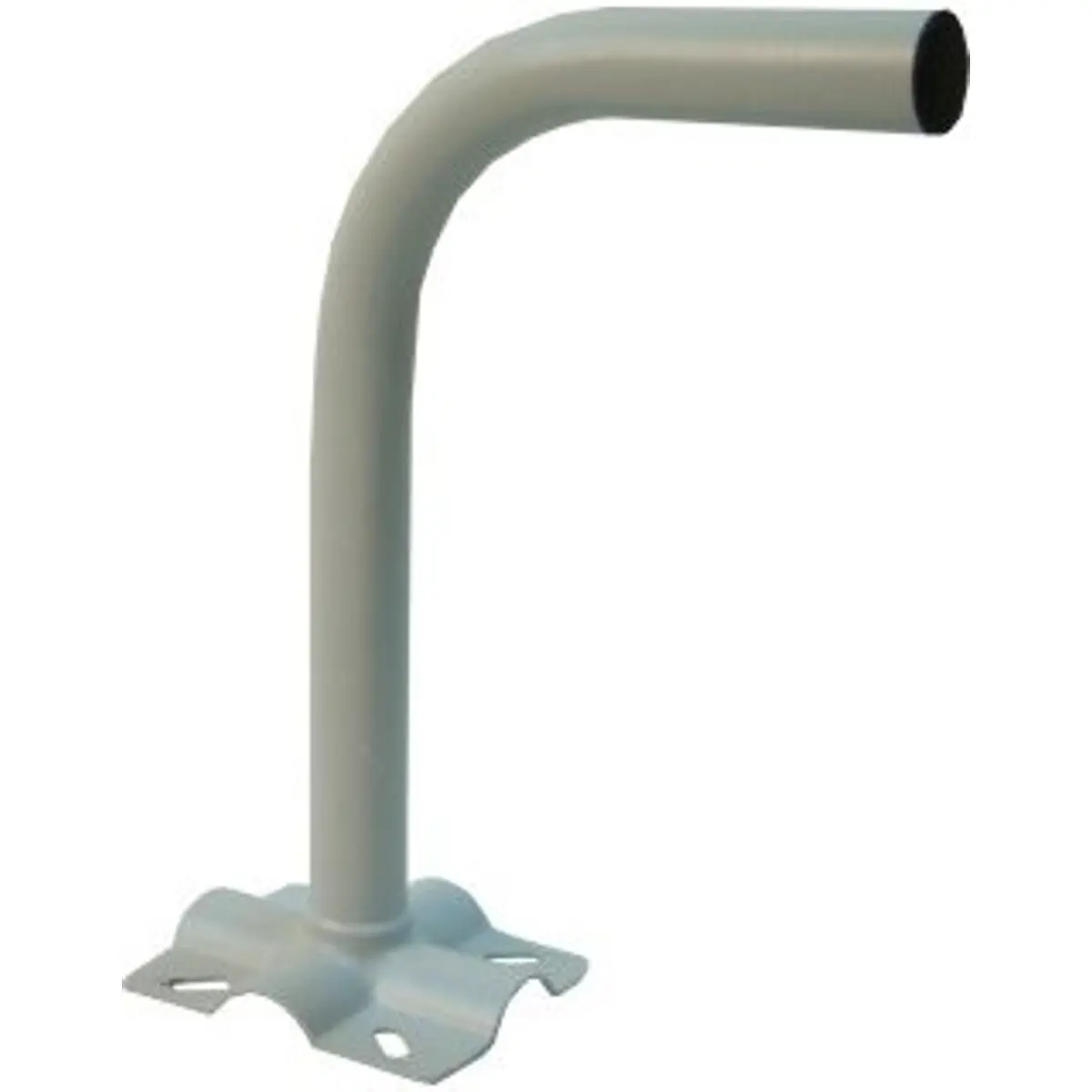 Este suporte de parede em L, fabricado em ferro pintado com acabamento branco, oferece fixação segura a um mastro graças à base de 10x10 cm. Com altura de 15,5 cm, comprimento de 32 cm e diâmetro de 32 mm, permite orientar e sustentar antenas com robustez e montagem simples, ideal para instalações em paredes ou postes.
