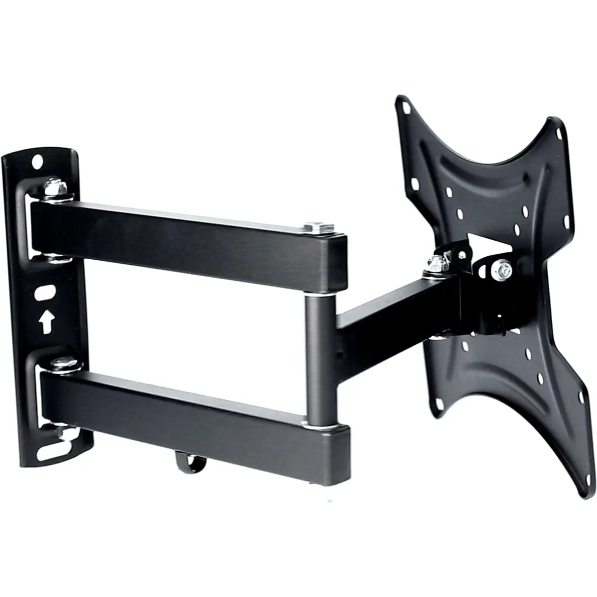 Este suporte de parede com braço duplo é compatível com TVs de 23 a 42 polegadas e oferece inclinação de +3° a -10°, rotação de até ±90° e nivelamento de ±3°. Construído em aço e plástico, suporta até 20 kg e oferece compatibilidade VESA entre 75x75 e 200x200. A distância da parede à TV varia entre 44 e 320 mm, com acabamento na cor preta, ideal para montagem na parede.